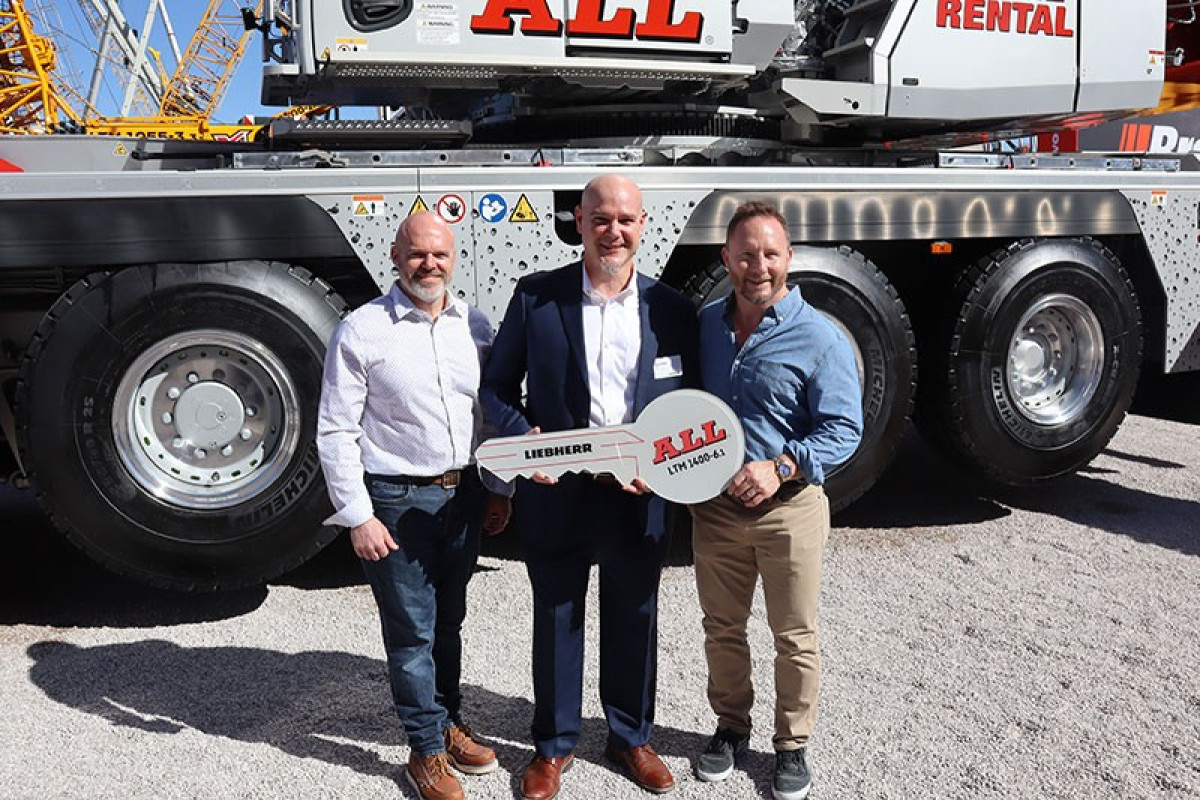 Ohio-basiertes ALL Erection & Crane Rental Corp. erhält die Übergabe eines LTM 1400-6.1 Mobilkrans auf der größten Bau-Messe Nordamerikas, der Conexpo 2026. Diese Übergabe wird der erste LTM 1400-6.1 in ihrer Flotte sein und ihr breites Spektrum an Liebherr-Maschinen weiter stärken. ALL Erection & Crane Rental Corp. ist der Flaggschiff-Betriebshof der ALL Family of Companies und gehört zu den führenden Kranvermietern im Mittleren Westen. ALL Erection & Crane Rental ist das Fundament der ALL Family of Companies und beherbergt eine der größten Flotten von Liebherr-Geländekrane (All-Terrain Cranes) in den Vereinigten Staaten. Spezialisierungen umfassen Windenergie, Stahlbau, Hafen- und Schiffbau sowie schwere industrielle Wartung; ihre umfangreiche Flotte von Geländekranen ermöglicht eine breite Palette von Anwendungen. Standards setzen Der LTM 1400-6.1 Mobilkran ist der Nachfolger des bewährten LTM 1350-6.1, und etabliert sich als der kleinste Kran mit Y-Untergurtung und vergrößert dabei die Hubkapazität erheblich. Er zeichnet sich außerdem durch seine klugen und einfachen Aufbauroutinen aus, die ihn zu einer extrem flexiblen und wirtschaftlichen Maschine für ALL Erection’s Flotte machen. Liebherr-Geländekrane sind darauf ausgelegt, für alles bereit zu sein, mit Assistenzsystemen wie VarioBallast®, die eine unendliche Ballastverstellung über einen hydraulischen Drehturm ermöglichen. Zudem ist der LTM 1400-6.1 Mobilkran mit Lastdiagrammen ausgestattet, die eine maximale Windgeschwindigkeit von bis zu 51,2 ft/s (15,6 m/s) zulassen, um auch bei windigen Bedingungen