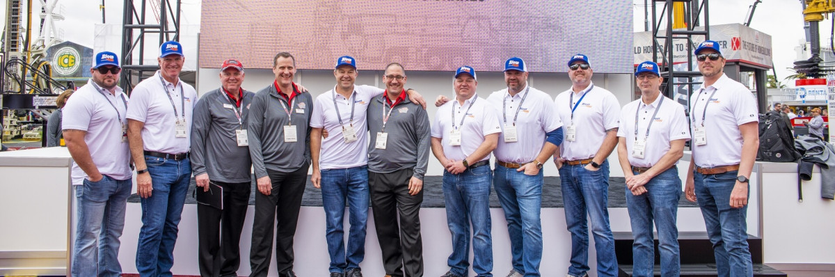 on links nach rechts: Josh Bowman und Joe Nelms, Bigge Crane; David Hull und Mike Heacock, Manitowoc; Weston Settlemier, Bigge Crane; Aaron Ravenscroft, Manitowoc; Jesse Sullivan, Pat Gigante, Brian Noga, Mike Buckland und Zack Ganzell, Bigge Crane.-----------------------Bigge Crane and Rigging feiert Potain-Einkäufe auf der CONEXPO 2020---------------------Bigge Crane and Rigging, eines der zehn weltweit führenden Kranunternehmen, hat in den letzten drei Jahren zahlreiche Potain-Turmdrehkrane eingesetzt. So viele sogar, dass Manitowoc Cranes dem kalifornischen Unternehmen nun eine Auszeichnung für den größten Absatz von Potain-Turmdrehkranen mit Selbstmontage im Zeitraum von CONEXPO 2017 bis CONEXPO 2020 verliehen hat. David Hull, Mike Heacock und Aaron Ravenscroft von Manitowoc überreichten die Auszeichnung an mehrere Führungskräfte von Bigge Crane am Manitowoc-Stand in Las Vegas.