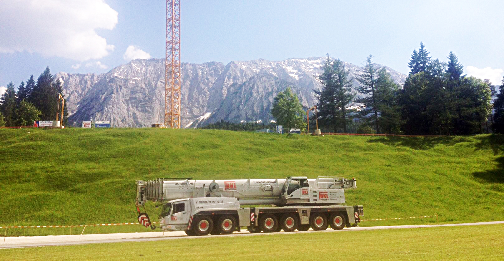 Die große deutsche Kranverleihfirma BKL hat ihren Grove GMK6300L in weniger als sechs Monaten und mehr als 620 Stunden lang eingesetzt, wodurch er zu einem der am häufigsten verwendeten Krane in ihrer Flotte wurde. Der Kran mit 300 t Tragfähigkeit hat an Einsatzorten in ganz Süddeutschland Turmdrehkrane errichtet, Industriemaschinen installiert und Betonfertigteile gehoben. Bei einem kürzlich erfolgten Einsatz errichtete der GMK6300L einen Turmdrehkran an einer hochgelegenen Baustelle in den Alpen. Der Kran hob 27 t schwere Lasten auf 47 m Höhe, während er mit 20 m Ausladung arbeitete. Die Firma BKL nahm ihren GMK6300L im Februar entgegen und seither zeichnet sich der Kran fast ständig an Einsatzorten und nicht auf BKLs Betriebsgelände ab, sehr zur Freude von Detleff Gamper, dem Mobilkran-Einsatzplanungsleiter bei BKL. „Trotz seiner Größe ist der GMK6300L einfach zu transportieren und schnell zu rüsten“, so Gamper. „Seine Hubleistung und die Fähigkeit, in schwierigem Gelände zu arbeiten, machen ihn zu einem sehr vielseitigen Kran.“ Der im vergangenen Sommer erfolgte Kranaufbau mit dem GMK6300L fand im Karwendelvorgebirge außerhalb von Krün, in der Nähe der österreichischen Grenze, statt. Unwegsames Gelände und bestehende Platzverhältnisse stellen den großen Vorteil des in seiner Klasse führenden 80 m langen Auslegers des Grove GMK6300L unter Beweis. Trotz dieser Herausforderungen ermöglichte die präzise lastabhängige Steuerung des Krans vier Technikern und zwei Kranführern den 48 m hohen Turmdrehkran in nur drei Tagen zu errichten. Außerdem wurde ein 40-t-Hilfskran verwendet. Der Turmdrehkran, der mit einem 71-m-Hilfsausleger ausgestattet wurde, wird 12 Monate lang an dem malerischen Einsatzort verbleiben, wo er den neuen Bau eines Hotels unterstützt. Mit einer Flotte aus mehr als 300 Turndrehkranen und Mobilkranen ist die BKL Baukran Logistik GmbH einer der größten Kranlieferanten in Deutschland. Das Unternehmen hat mehr als 40 Jahre Erfahrung beim Vertrieb und Verleih von Kranen und bietet für Projekte in ganz Deutschland Hubdienstleistungen an. Es hat Niederlassungen in Forstinning bei München, in Frankfurt sowie in Peine bei Hannover. Der Grove GMK6300L ist eine der größten Erfolgsgeschichten des Unternehmens. Seit seiner Einführung Ende 2010 arbeiten mehr als 100 Einheiten an Projekten auf vier Kontinenten. Der sechsachsige Kran ist eine der ersten Einheiten, die von den kürzlich erfolgten Qualitätsverbesserungen in Groves norddeutschem Werk in Wilhelmshaven profitieren.