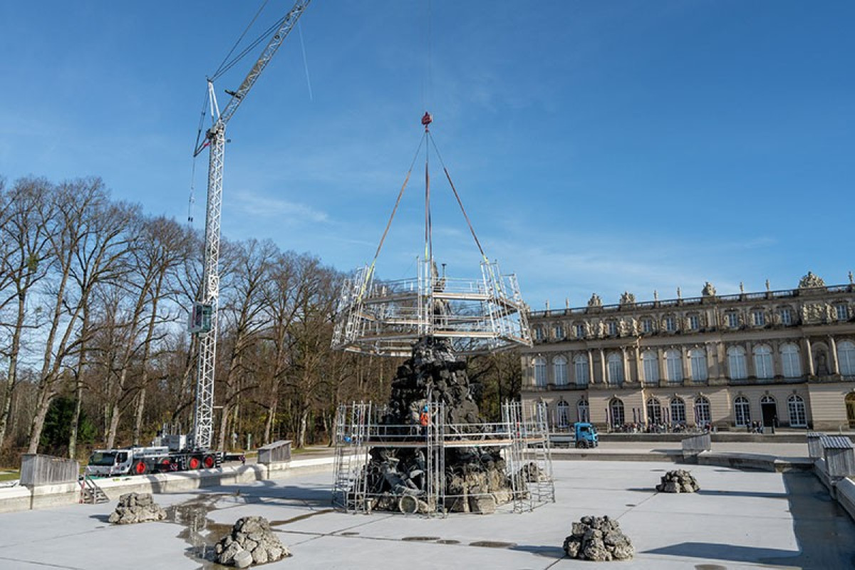 BKL Liebherr-Mobilbaukran auf der Herreninsel: Winterschutz für die Schlossbrunnen