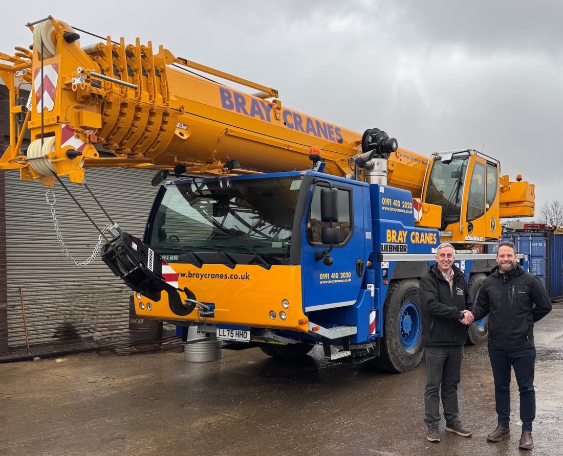 Der britische Vermietungsbetrieb Bray Cranes hat einen 60-Tonnen-All-Terrain-Kran vom Typ Liebherr LTM 1060-3.1 erhalten, während ein 90-Tonnen-Modell LTM 1090-4.2 im Laufe dieses Jahres erwartet wird.--------------------------- Der dreiachsige LTM 1060-3.1 ist mit einem sechsteiligen 48-Meter-Hauptausleger ausgestattet, der mit einer 9,5 bis 16 Meter langen, klappbaren Gitterspitze (bi-fold swingaway) verlängert werden kann. Dadurch erreicht der Kran eine maximale Hakenhöhe von über 67 Metern und bietet gleichzeitig einen Neigungswinkel von bis zu 40 Grad. Zudem kann der Kran sein gesamtes Gegengewicht von 12,8 Tonnen innerhalb der britischen STGO-Vorschriften transportieren, die bis zu 16 Tonnen pro Achse erlauben.------------------- Die Neuanschaffung folgt auf die Erweiterung des Fuhrparks Ende 2024 um einen weiteren 60-Tonnen-LTM 1060-3.1 sowie einen 40-Tonnen-Kran vom Typ LTM 1040-2.1.--------------------Geschäftsführer Neil Stephenson sagte: „Wir freuen uns sehr, das Jahr mit der Lieferung dieses neuen LTM 1060-3.1 zu beginnen und damit unsere Flotte moderner Liebherr-Krane weiter auszubauen. Wir entscheiden uns in der Regel für Liebherr-Krane, da sie nicht nur zuverlässig sind, sondern wir auch eine hervorragende Unterstützung durch die lokalen Servicetechniker im Außendienst erhalten.“------------------------Das familiengeführte Unternehmen Bray Cranes mit Sitz in Birtley, südlich von Gateshead und Newcastle im Norden Englands, wurde Anfang der 1950er Jahre unter dem Namen Reeds Cranes gegründet. Heute reicht die Mietflotte von einem 4-Tonnen-Böcker-Aluminium-Lkw-Kran über kleine Kato-Citykrane bis hin zu einem 150-Tonnen-All-Terrain-Kran von Liebherr. Das Unternehmen ist im gesamten Nordosten Englands tätig.