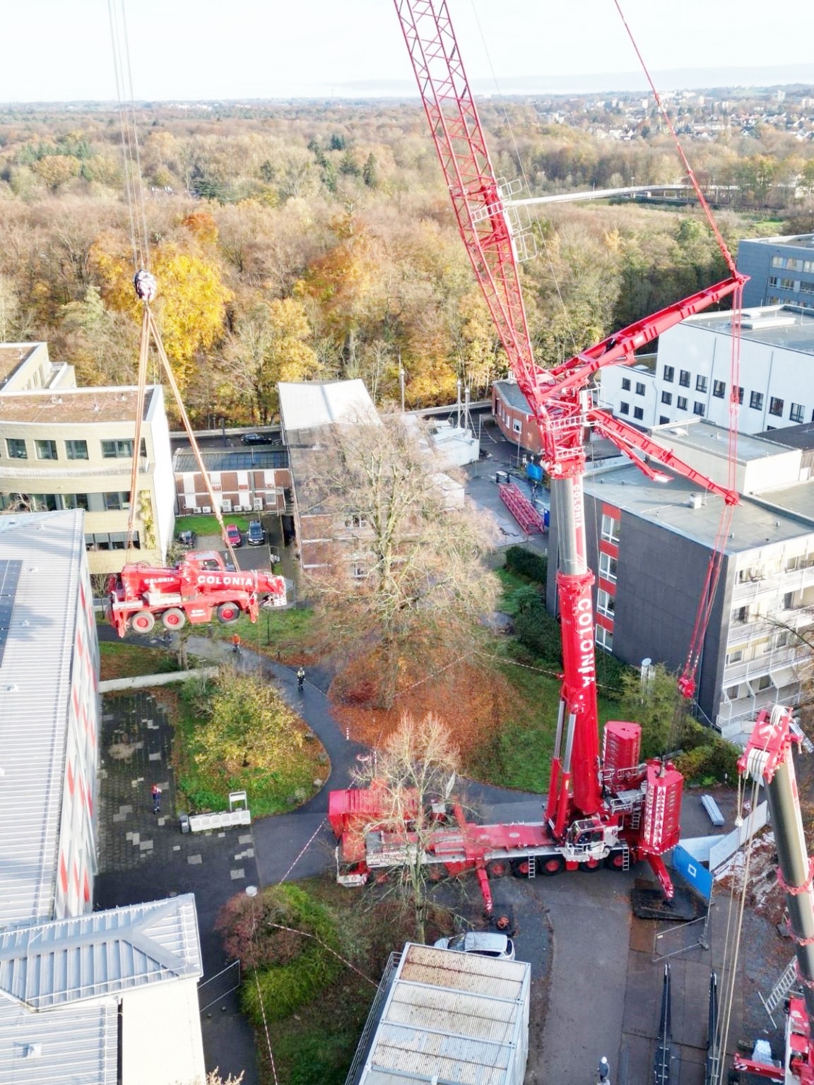 Ende letzten Jahres hatten COLONIA Spezialfahrzeuge zwei spannende Einsätze, die ein hohes Maß an Präzision erforderten. Der erste Auftrag begann mit der Modulmontage. Die erste Operation begann mit der Modulmontage. Die Module maßen 11 m in der Länge, 4 m in der Breite und wogen 13,4 t; sie sollten über eine Distanz von 70 m positioniert werden. Dafür wurde der LTM 1650-8.1 mit 175 t Ballast und einem 56 m langen Luffing-Jib eingesetzt. Die zweite Operation folgte unmittelbar. Ihr Team musste anschließend einige Änderungen an der Krananlage vornehmen, daher wurde zunächst ein AC40 vom LTM1650 hineingehoben, da der Zugang nicht ausreichend war. Die zweite Operation folgte unmittelbar darauf. Ihr Team musste anschließend einige Änderungen an der Krananlage vornehmen, daher wurde zunächst ein AC40 vom LTM1650 hineingehoben, da der Zugang nicht ausreichend war. Nach den Vorarbeiten wurde der Kran mit einem Abspannsystem (Guying) ausgestattet und der Luffing-Jib auf 91 m ausgefahren. Schließlich wurde der LTM 1650 in voller Konfiguration aufgebaut und konnte Belüftungseinheiten mit 1,5 t in einem Radius von 108 m heben. COLONIA bedankt sich bei ihrem Team für die großartige Arbeit und auch bei den Kunden für die spannenden Einsätze.