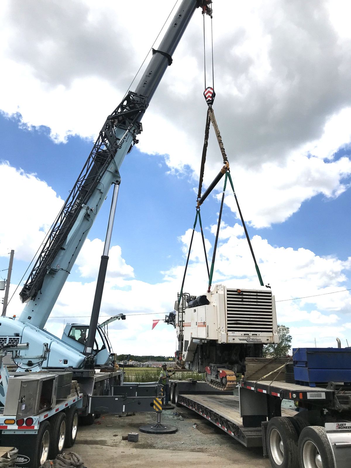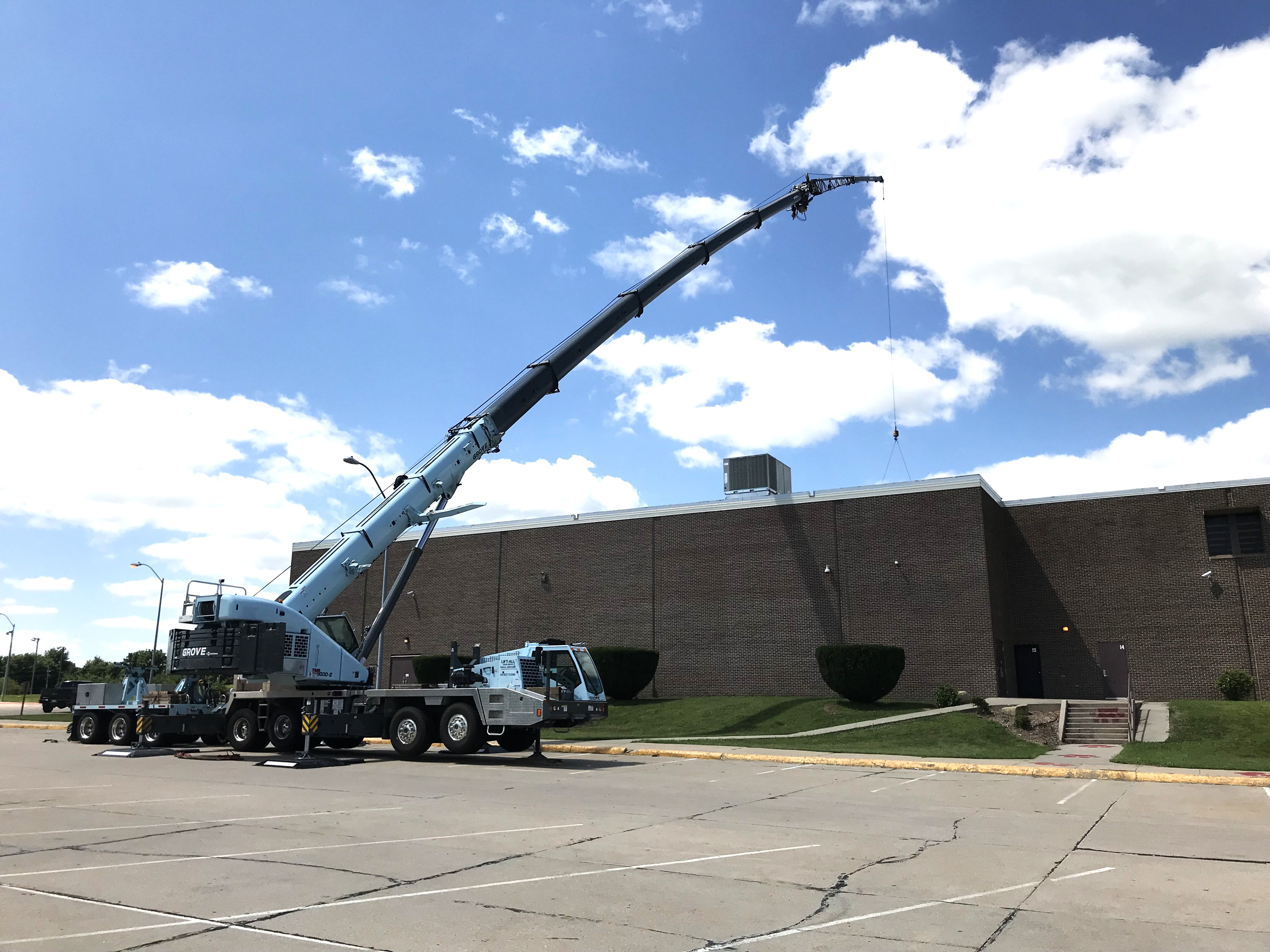 Der in Omaha, Nebraska, ansässige Hebezeuganbieter hat kürzlich zwei neue Grove-LKW-Krane in seine Flotte aufgenommen und damit eine Lücke von 100 Tonnen mit dem TMS9000-2 geschlossen.-------------------------- Der Grove TMS9000-2 ist dank abnehmbarem Gegengewicht und extrem reaktionsschneller Handhabung ein idealer Kran sowohl für schwere Hebearbeiten als auch für leichtere Arbeiten im Wohnbereich.----------------------------- Grove und National Crane sind nach wie vor verlässliche Partner und haben Lift-All seit 1987 beim Wachstum des Unternehmens unterstützt, als dieses sein erstes Grove-Modell, einen TMS528B, erwarb, der noch immer im Einsatz ist. Die markanten hellblauen Krane von Lift-All Crane Service prägen seit der Firmengründung 1977 das Straßenbild und die Baustellen im Osten Nebraskas und Westen Iowas. Der langjährige Kunde aus Grove hat kürzlich zwei weitere LKW-Krane vom nahegelegenen Händler Aspen Equipment erworben, um Lücken in seinem Fuhrpark zu schließen: einen TMS9000-2 Ende 2018 und einen TMS500-2 im Frühjahr 2020.-------------------------- Lift-All-Inhaber Joe Hylok ist besonders zufrieden mit dem neuen 100-Tonnen-Modell: „Wir hatten bereits Krane mit 80 und 120 Tonnen Tragkraft, sodass es immer eine Lücke im mittleren Bereich gab. Der TMS9000-2 hat diese Lücke nun geschlossen. Er hat sich hervorragend bewährt und war sofort einsatzbereit.“------------------------ Ein wesentlicher Grund für diesen sofortigen Erfolg liegt im hervorragenden Fahrgefühl des Krans: „Normalerweise wird es bei größeren Kranen mit zunehmender Entfernung vom Standort immer schwieriger“, so Hylok weiter. „Die halbe Miete ist schon, den Kran überhaupt zur Baustelle zu bringen. Doch bei diesem Kran ist die Kabine komfortabel, und er fährt sich fast so gut wie ein Sattelzug – das macht die Bedienung kinderleicht. Er ist effizient und schnell.“ Diese verbesserte Fahrbarkeit ist vor allem den kompakten Abmessungen, dem agilen Manövrieren und dem geringen Gewicht des TMS9000-2 zu verdanken, das durch das abnehmbare Gegengewicht ermöglicht wird. Dadurch lassen sich bis zu 22.000 kg hydraulisch aus dem Bereich um die Kabine des Oberwagens herausnehmen, was den Transport erheblich vereinfacht. Da Lift -All in vielen verschiedenen Branchen eingesetzt wird, darunter Dachdeckung, Mobilfunkmasten, Fachwerkbau, Stahlbau und Klimatechnik, erweist sich diese größere Flexibilität zusammen mit dem einfachen Aufbau immer wieder als äußerst nützlich.-------------------------- „Einer der großen Vorteile des Krans ist seine Vielseitigkeit. Wenn wir eine schwerere Last heben müssen, können wir später zusätzliches Gegengewicht anbringen. Dadurch muss der Kran nicht 5.443 kg (12.000 lbs) mehr transportieren“, erklärte Hylok. „Wir können den Kran einfach mit einem kleinen Begleitfahrzeug für das zusätzliche Gegengewicht mitnehmen; es ist die perfekte Lösung.“ „ Wir arbeiten auch oft in Wohngebieten, wo man vorsichtig fahren muss, mit Kreisverkehren, engen Straßen usw. Die Maschine ist so konzipiert, dass sie leicht und wendig genug ist, um diese Bereiche problemlos zu erreichen und Hebearbeiten durchzuführen. Früher haben wir beim Aufstellen von Pools in Swim-Spas immer einen Ausleger an unseren 80-Tonnen-Kran montiert, aber selbst ohne Ausleger können wir mit dem TMS9000-2 einen Pool in 45 Metern Höhe aufstellen. Es ist einfach unglaublich, dass wir so weit ohne Ausleger kommen!“------------------------------- Diese beeindruckende Leistung wird durch den sechsteiligen MEGAFORM-Ausleger des TMS9000-2 ermöglicht, der die Tragfähigkeit gegenüber herkömmlichen Konstruktionen erhöht. Er lässt sich von 11 m auf 51,5 m ausfahren und nutzt das Twin-Lock-Verriegelungssystem optimal aus, das nicht nur Gewicht im ausgefahrenen Ausleger reduziert, sondern die Segmente auch automatisch miteinander verbindet. Optional sind Auslegerverlängerungen für Arbeiten erhältlich, die eine größere Reichweite über die Arbeitshöhe erfordern.----------------------- Die beiden neuen Maschinen, die sich nach wie vor problemlos bewähren , treten in die Fußstapfen des ersten LKW-Krans von Lift-All, eines Grove TMS528B aus dem Jahr 1987. Obwohl er nicht mehr täglich im Einsatz ist, dient er bei Bedarf weiterhin als Aushilfe. Häufiger im Einsatz ist der erste LKW-Kran des Unternehmens, ein National Crane 566B von 1991, sowie zwei weitere, langjährige Grove-LKW-Krane, ein TMS640 von 1999 und ein TMS540 von 2000. Lift-All Crane Service verfügt heute über 15 Krane mit Tragfähigkeiten von 12 bis 120 Tonnen und beschäftigt 10 NCCCO-zertifizierte Kranführer mit jeweils mindestens zehn Jahren Erfahrung. Das Unternehmen hat sich seit den Anfängen in den 1970er-Jahren, als Joe Hyloks Vater, Joe Senior, und seine Mutter Yvonne es mit nur einem Kran gründeten und ihn in der Farbe des Himmels strichen, an die er sich aus seiner Kindheit auf einem Milchviehbetrieb nahe Green Bay, Wisconsin, erinnerte – neben der Schilderinstallation –, enorm weiterentwickelt.---------------------------- „Irgendwann haben wir uns dann ganz auf die Kranvermietung spezialisiert“, resümiert Hylok. „Die Philosophie meines Vaters war: ‚Konzentriere dich auf eine Sache und mach diese eine Sache richtig gut.‘ Diesen Rat hört man oft von Geschäftsleuten. Über die Jahrzehnte haben uns die Grove-LKW-Krane wirklich geholfen, diesem Motto gerecht zu werden!“