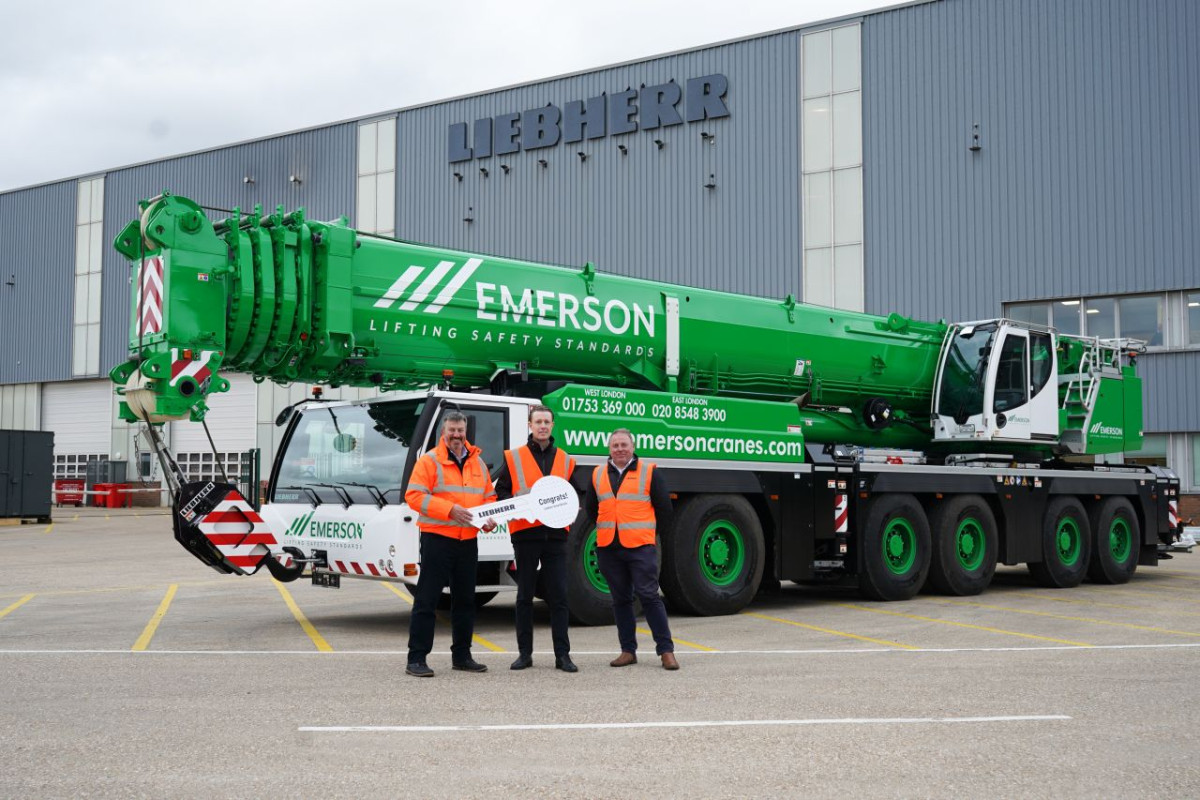Von links nach rechts: Richard Everist, Liam Clancy und Paul Goodal--------------Der Geländekran wird Emersons kontinuierliches Wachstum und sein Engagement für die Bereitstellung innovativer Hebelösungen mit hoher Kapazität unterstützen. Der neue All-Terrain-Kran verfügt über einen 70 m langen Hauptausleger und wurde mit einem 80,5 m langen Wippausleger sowie einem 45,5 m langen hydraulisch verstellbaren Ausleger ausgestattet, der für eine präzise Positionierung bei komplexen Hebevorgängen um bis zu 40° versetzt werden kann.-------------------- Trotz seines kompakten Sechsachs-Fahrgestells ist der LTM 1400-6.1 der kleinste Kran im Liebherr-Portfolio mit dem innovativen Y-Abspannsystem, das sowohl die Tragfähigkeit als auch die Seitenstabilität deutlich erhöht. In Großbritannien kann der Kran mit einer Achslast von 16,5 t fahren und dabei seinen Hakenblock, 10 t Ballast und das Y-Abspannsystem mitführen.---------------------- Emersons Geschäftsführer Liam Clancy kommentiert: „Wir waren von dem Moment an, als wir den LTM 1400-6.1 bei den Kundentagen von Liebherr vorgestellt sahen, äußerst beeindruckt. Dass er auf einem so kompakten Fahrgestell basiert, das einem 300-Tonnen-Kran entspricht, aber in bestimmten Konfigurationen Aufgaben bewältigen kann, die mit achtachsigen Kranen vergleichbar sind, war fantastisch.---------------------------------“ „Wir sind Liebherr sehr dankbar, dass sie den Mitarbeitern und Kunden von Emerson den Besuch ihres Werks in Deutschland und die Besichtigung der Produktionsanlagen ermöglicht haben, wodurch wir uns ein besseres Bild von der Leistungsfähigkeit des LTM 1400 6.1 machen konnten. Diese Maschine unterstützt unser Flottenangebot im britischen Schwerlastsektor zusätzlich.“