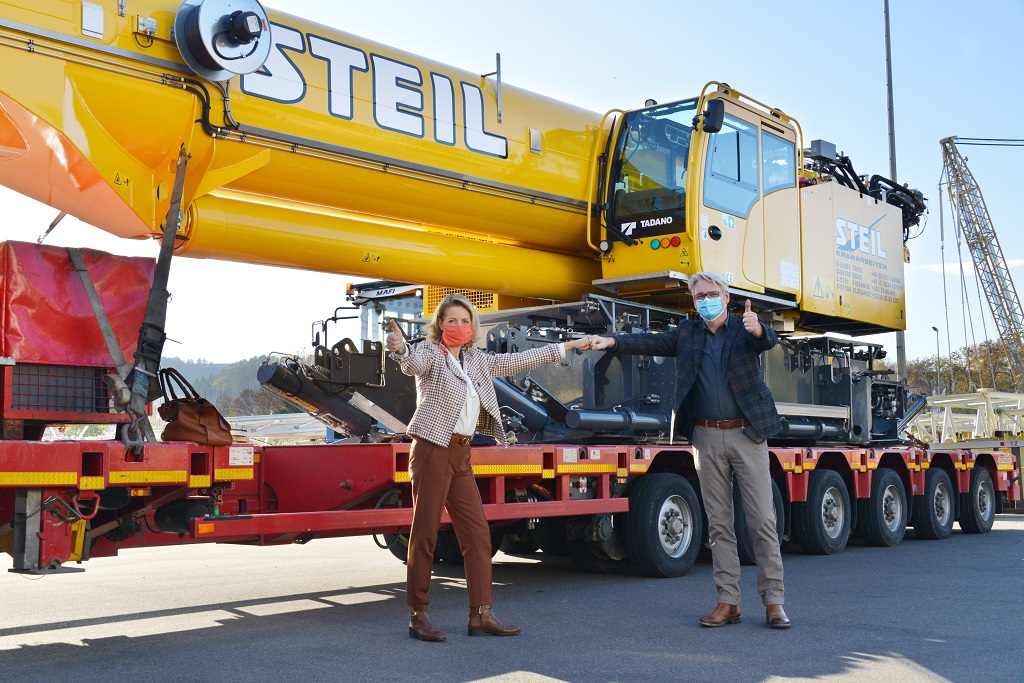 Dieser Moment war für beide Unternehmen etwas Besonderes: Für die Firma Steil Kranarbeiten aus Trier, weil sie den weltweit ersten ausgelieferten Tadano GTC-1800EX übernahm und für Tadano, weil dieser Kran als erster sinnbildlich für die Integration der Marken Tadano und Demag steht: Er wurde bei Tadano Demag in Zweibrücken entwickelt, wird dort gebaut und unter dem Markennamen Tadano vertrieben. Entsprechend hochrangig fiel die Übergabe in Zweibrücken aus: Von der Firma Steil waren die Geschäftsführerin Birgit Steil und Karl Trippel gemeinsam mit einem Kran- und LKW-Fahrer angereist. Und von Tadano waren Geschäftsführer Jens Ennen sowie Sales Manager Frank Brachtendorf vor Ort. Gemeinsam mit Tadano Produktmanager, Vincent Stenger, erläutern die Anwesenden, welche Erwartungen sie als Kunde und als Hersteller an den Kran knüpfen: B. Steil: Durch den Einsatz des GTC-1800EX rechnen wir inerster Linie mit einer signifikanten Zeit- und Kostenersparnis. Vor allem wegen der kurzen Rüstzeiten und der logistischen Vorteile beim Transport. Da der Kran zudem sehr flexibel ist, werden wir ihn vornehmlich auf engen Baustellen und in schwierigem Gelände einsetzen. Hier bietet er mit seinem intelligenten Steuerungssystem IC-1 Plus den Vorteil einer automatischen Ermittlung der zulässigen Tragfähigkeit unter Berücksichtigung von Faktoren wie Bodenneigung oder Spurverstellung. V. Stenger: Das ist in der Tat eine besondere Stärke des GTC-1800EX. Als echte Teleraupe bietet er enorme Tragfähigkeiten selbst bei bis zu 4° Schräglage. Er ist konsequent transportfreundlich konstruiert und benötigt nur einen kompakten 3 x 3 Meter Schwertransport plus vier Standard-LKW für die Fahrt auf eine Baustelle. Dort ist er dann mit wenigen Arbeitsschritten schnell gerüstet. Sein leistungsstarker Unterwagen mit hoher Vortriebskraft und die stufenlose, bei Bedarf auch asymmetrische Spureinstellung macht ihn unter allen Geländebedingungen extrem flexibel einsetzbar. ”Der GTC-1800EX ist ein unglaublich vielseitig einsetzbarer Kran.” Wo sehen Sie konkret die potentiellen Einsatzbereiche dieses neuen Raupenkrans? B. Steil: Wir werden ihn zunächst hauptsächlich bei Windkraftprojekten als Hilfskran für unseren Demag CC 3800 nutzen. Aber auch bei der Montage von Betonfertigteilen wird er uns gute Dienste leisten. Speziell hierfür haben wir den Kran bewusst mit zwei Winden geordert. V. Stenger: Der GTC-1800EX ist konstruktiv so ausgelegt, dass er weltweit in nahezu allen Industriebereichen einsetzbar ist: Im Hoch- und Tiefbau für die Montage von Fertigbetonteilen, Brücken oder Tunneln, in der Windkraft als Rüst- und Vormontagekran oder auch bei der Wartung beispielsweise großer Bergbauanlagen. Welche Bedeutung hat der GTC-1800EX für Tadano Demag und die Integration beider Unternehmen? V. Stenger: Mit dem GTC-1800EX haben wir einen enorm leistungsfähigen und höchst wettbewerbsfähigen Raupenkran auf den Markt gebracht. Wir sind von unserem Entwicklungskonzept und dessen bisherigem Ergebnis so überzeugt, dass wir in Deutschland zurzeit eine Roadmap erarbeiten, um weitere GTC-Modelle auf den Markt zu bringen. Dies geschieht in Abstimmung mit der Tadano GTC-Produktlinie, die in den USA entwickelt wird. J. Ennen: Der GTC zeigt, wie innovativ wir sind und dass unser Konzept der Kundeneinbindung Früchte trägt. Es genügt nicht, einfach nur Innovationen anzubieten. Man muss die Kunden in den Entwicklungsprozess einbinden. Nur so kann man das entwickeln, was sie brauchen. Hierfür ist der GTC-1800EX ein überzeugendes Beispiel. Und ich freue mich sehr, dass die Firma Steil die erste Maschine übernommen hat. Das Unternehmen ist ein wichtiger Kunde, der mit diesem Kauf sein Vertrauen in unsere Produkte und unsere Firma bestätigt. Was in Zeiten wie diesen ja ganz besonders wichtig ist. Wie stellt sich für Sie und Ihre Unternehmen die aktuelle Situation dar? B. Steil: Aufgrund der Corona Pandemie ist die aktuelle Situation für uns alle natürlich sehr herausfordernd. Wir bewerten die aktuelle Lage wöchentlich neu und leiten daraus gegebenenfalls Maßnahmen ab, um flexibel auf alle Entwicklungen reagieren zu können. Unsere oberste Priorität ist es, Mitarbeiter und Kunden bestmöglich zu schützen. Insgesamt können wir mit der Situation jedoch noch sehr zufrieden sein, da uns die Shutdown-Maßnahmen bisher kaum betroffen haben. ”Wir stehen zu Tadano Demag!” Und wie bewerten Sie die momentane Situation bei Tadano? B. Steil: Wir kennen Tadano Demag als kompetenten und zuverlässigen Kranhersteller. Deshalb vertrauen wir darauf, dass das Unternehmen gesund aus dem Schutzschirmverfahren heraustreten wird. Für uns ist es wichtig, dass Tadano Demag weiterhin erhalten bleibt und wir beabsichtigen, auch in Zukunft dort Krane zu kaufen. J. Ennen: Für uns ist es natürlich sehr wichtig, dass unsere Kunden weiterhin zu uns stehen. Das ist nach wie vor der Fall. Wir nutzen das Schutzschirmverfahren, um einen Sanierungsplan auszuarbeiten. Dieser wird die Wettbewerbsfähigkeit von Tadano Demag und Tadano Faun sichern, indem wir Synergien über die gesamte Wertschöpfungskette hinweg noch besser nutzen, die Produktion langfristig optimieren und die Durchlaufzeiten verkürzen werden. Davon werden natürlich auch unsere Kunden spürbar profitieren – der GTC-1800EX ist erst der Anfang unsereer Integration! Seine erste Bewährungsprobe hat der GTC-1800EX bei der Firma steil übrigens bereits mit Bravour gemeistert: Direkt nach der Übergabe ging es für ihn auf einen Windpark im Schwarzwald, wo er Rotorblätter gehoben hat und den dort ebenfalls im Einsatz befindlichen Demag CC 3800-1 nach dessen letzten Hub abgebaut hat – ganz so, wie man es sich bei Steil vorgestellt hatte.