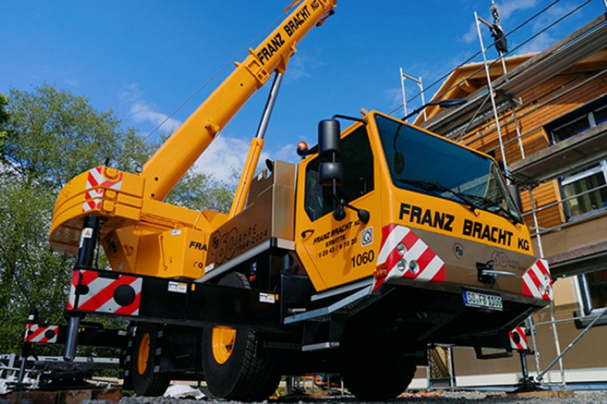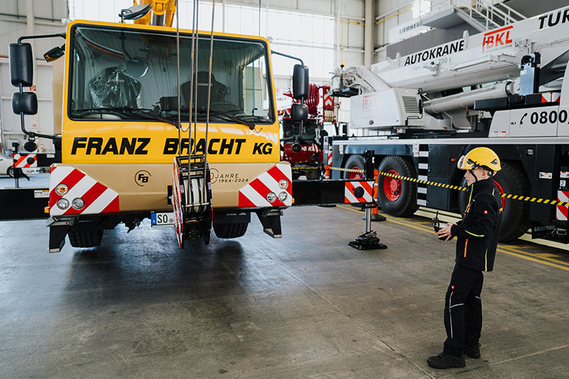 Die Franz Bracht Kran-Vermietung GmbH feiert in diesem Jahr ihr 60-jähriges Bestehen. Das Unternehmen hat sich von einem Einzelunternehmen zu einer Unternehmensgruppe mit 16 Standorten unter dem Motto „Lust auf Last“ entwickelt. Im April nahm Bracht einen Liebherr LTM 1030-2.1 mit dem Jubiläumslogo in Empfang. Mit dem neuen Kran betreibt die Gruppe aktuell 15 Maschinen dieses Typs. Franz-Bracht Jr. (8 Jahre alt) – Liebherr-Krane zu bedienen ist kinderleicht. Die Franz Bracht Kran-Vermietung GmbH feiert in diesem Jahr ihr 60-jähriges Bestehen. Das Unternehmen hat sich von einem Einzelunternehmen zu einer Unternehmensgruppe mit 16 Standorten unter dem Motto „Lust auf Last“ entwickelt. Im April nahm Bracht einen Liebherr LTM 1030-2.1 mit dem Jubiläumslogo in Empfang. Mit dem neuen Kran betreibt die Gruppe aktuell 15 Maschinen dieses Typs. Franz Bracht Jr. saß als einer der Ersten am Steuer des neuen LTM 1030-2.1. Er begleitete seinen Vater Dirk bei der Abholung des Sondermodells und scheint eine Faszination für Kräne und schwere Lasten im Blut zu haben. Sein Großvater Franz Bracht hatte das Unternehmen 1964 gegründet.„Zweiachsige Mobilkrane werden auch künftig eine wichtige Rolle in unserem Fuhrpark spielen, obwohl die Konkurrenz durch schwere LKW-Ladekrane und große Teleskopstapler deutlich zugenommen hat“, erklärt Geschäftsführer Dirk Bracht. „Rein ökologisch und ökonomisch gesehen ist es meiner Meinung nach immer noch besser, mit einem Gesamtgewicht von 24 Tonnen zu fahren als mit einem dreiachsigen Kran mit 36 Tonnen.“ Mit dem neuen Kran betreibt Bracht nun insgesamt 15 Krane des Typs LTM 1030-2.1 in seiner Unternehmensgruppe (Franz Bracht, Hofmann und Wilden). Der LTM 1030-2.1, von dem Liebherr rund 2.800 Einheiten gebaut hat, ist mittlerweile ein historischer Kran. Er wurde 1997 auf der Intermat in Paris vorgestellt und war der weltweit erste Mobilkran mit moderner Datenbustechnologie. Seitdem hat Liebherr seinen kleinsten Zweiachs-Kran kontinuierlich mit neuester Mobilkrantechnik auf dem neuesten Stand gehalten, um Marktanforderungen, gesetzliche Vorgaben und Normen zu erfüllen. Dazu gehören Aspekte wie Beleuchtung, Ballastüberwachung und die neueste Abgasnorm Stufe 5. Für diesen 27 Jahre alten Krantyp bietet Liebherr außerdem die variable Abstützbasis VarioBase® an. Dirk Bracht beschreibt die Leidenschaft, die das Unternehmen zu dem gemacht hat, was es heute ist: „Seit über einem halben Jahrhundert pflegen wir die Tradition, Planer und Ingenieure im Hoch- und Tiefbau, in der Großindustrie und in der Petrochemie zu inspirieren – mit dem Fachwissen, der Präzision und der Zuverlässigkeit, die unsere Arbeit prägen. Egal wie schwer die Lasten, wie groß die Abmessungen und wie hoch und anspruchsvoll die Objekte sind – wir meistern sie!“ Die Partnerschaft des Unternehmens mit Liebherr feiert ebenfalls Jubiläum. „1974, also vor genau 50 Jahren, kauften wir unseren ersten Liebherr-Kran, einen LG 1130 Gittermast-Mobilkran. Das war der Beginn einer erfolgreichen Partnerschaft, die auf Vertrauen, Ehrlichkeit und Loyalität beruht und bis heute Bestand hat“, so Bracht.