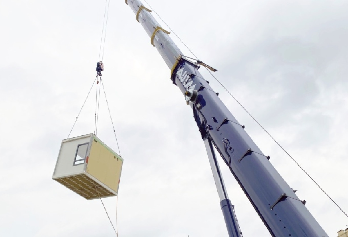 Ein französisches Hebe- und Transportunternehmen sowie Tochtergesellschaft des Transport- und Logistik-Giganten Charles André Group (GCA) setzte seinen neuen GMK6300L-1 All-Terrain-Kran mit 300 t Tragfähigkeit ein, um vorgefertigte Module für den Erweiterungsbau eines lokalen Krankenhauses zusammenzubauen. Die kompakten Abmessungen und der ruhige Betrieb des Kranes überzeugten von Anfang an und sorgt dafür, dass der Betrieb am Krankenhaus mit minimalen Beeinträchtigungen durch die Erweiterungsarbeiten fortgeführt werden konnte. AUTAA Île-de-France, das seine neue Grove GMK6300L-1 sofort einsetzte, ist Teil von GCA Exceptional Lifting and Transport, einer neu geschaffenen Division der Charles André Group (CGA), die entstand, als GCA AUTAA im Jahr 2023 übernahm. Unmittelbar nach der Lieferung wurde der Kran zum ersten Einsatzort geschickt, wo er prefabricated modules für eine Erweiterung des Saint Camille Hospitals in Bry-sur-Marne, 17 km östlich von Paris, montiert. Die Erweiterung besteht aus 21 Modulen, von denen das schwerste 21 t wiegt und in einem Radius von 32 m positioniert wird. Jedes Modul wird als Einzelteil an Ort und Stelle gehoben. „Wir sind von unserem neuen GMK6300L-1 sehr beeindruckt; der Kran war kompakt genug, um in den begrenzten Platz auf der Baustelle zu passen, was minimale Störung des Krankenhausbetriebs und eine ununterbrochene Ambulanzzufahrt während der Arbeiten ermöglicht hat. Zudem sorgt der zweimotorige Antrieb, wobei der obere Aufbau über einen kleineren Motor verfügt, für sehr niedrige Geräuschpegel. Es ist ein Kran, der alle Anforderungen erfüllt“, sagte Eric Grimaldi, Geschäftsführer von GCA Exceptional Lifting and Transport. Der Umgang mit dem GMK6300L-1 war für den erfahrenen Bediener Eduardo Catarino, der zuvor einen 130 t Grove GMK5130-2 und einen 150 t Grove GMK5150L bedient hatte, reibungslos.„Wir nutzen hier lediglich 41,9 m Auslegerlänge und 74,5 t Gegengewicht, damit liegt der Kran innerhalb seiner Kapazitäten. Der Kran arbeitet extrem gut; Hakenhub und Drehen sind sehr präzise – das ist für das Bodenpersonal wirklich wichtig. Ich kann es kaum erwarten, die volle 80 m-Auslegerlänge zu testen, um zu sehen, wie gut er performt“, so Catarino. Der 300 t GMK6300L-1 baut auf dem Erfolg seines Vorgängers GMK6300L auf. Er bietet noch bessere Hebekapazitäten bei einem 80 m langen MEGAFORM®-Ausleger und optional bis zu 37 m Erweiterung für eine maximale Tipp-Höhe von 120 m. Eine flexible 26 t schwere, straßentaugliche Gegengewichtsladung ist mit austauschbaren Slabs erhältlich, um Logistikkosten zu optimieren. Mit seinem Mercedes-Motor und der vollautomatischen Allison-Getriebe ist er eine zuverlässige und leistungsstarke Ergänzung jeder Kranflotte. GCA Exceptional Lifting and Transport betreibt von 11 Standorten in Frankreich aus eine Flotte von 110 Mobilkranen und beschäftigt 365 Mitarbeiter. Es gehört zur Charles André Group, die 1932 gegründet wurde und derzeit von Delphine André, der Enkelin des Gründers, geführt wird. Im Jahr 2023 betrug der Umsatz der CGA 1,7 Milliarden Euro; weltweit arbeiten rund 10.000 Menschen in 15 Ländern für das Unternehmen. Die Übernahme von AUTAA im Jahr 2023 schuf die neue Division GCA Exceptional Lifting and Transport.