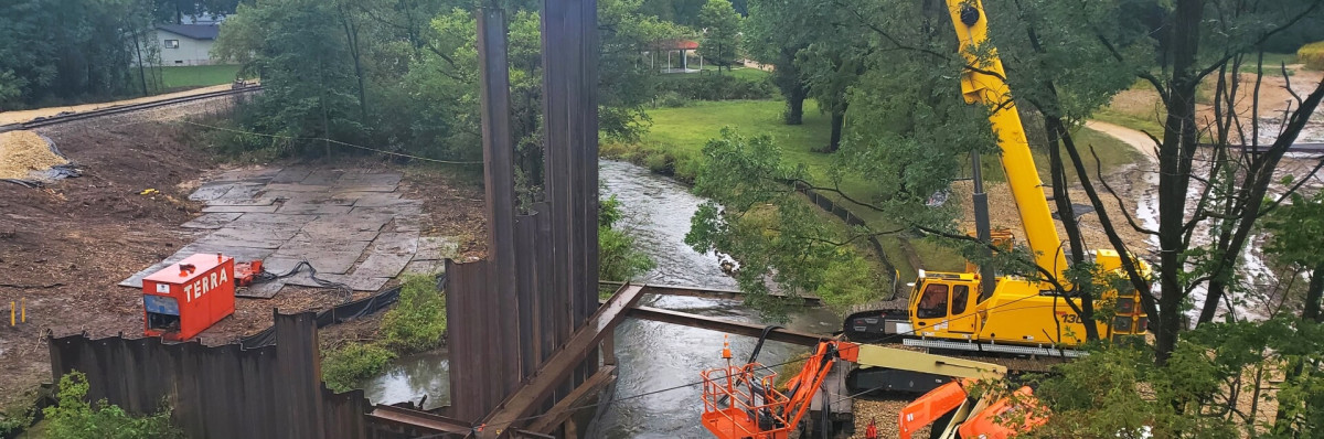 Bei einem umweltsensiblen und zeitlich begrenzten Projekt war die Rekonstruktion eines Flussufers und die Neuverlegung einer Gasleitung mit minimalen Beeinträchtigungen erforderlich. Der Teleskopraupenkran mit großer Reichweite und hoher Tragfähigkeit ermöglichte es, die Arbeiten von nur einer Seite des Bachs aus durchzuführen und Lasten von 15.000 Pfund in einem Radius von 95 Fuß zu platzieren. Auf der Website des in Wisconsin ansässigen Unternehmens Terra Engineering & Construction heißt es stolz, dass das Unternehmen aktiv „nach schwierigen Gewässerprojekten sucht, die andere Bauunternehmen abschrecken könnten“ – und dies ist zwar größtenteils auf die qualifizierten Mitarbeiter von Terra und die jahrelange Erfahrung in diesem Sektor zurückzuführen, aber auch der Zugang zu einem Grove GHC130 Teleskopraupenkran erwies sich als entscheidend, um die strikte Frist für eines der jüngsten umweltsensiblen Projekte einzuhalten. Nach einer Reihe von Überschwemmungen, die zum Einsturz des Ufers eines Forellenbachs in Mazomanie, Wisconsin, führten, wurde eine Gasleitung freigelegt und musste ersetzt werden. „Das Ministerium für natürliche Ressourcen hat uns einen sehr engen Zeitplan vorgegeben, um die Arbeiten durchzuführen und die Beeinträchtigung des Forellenbachs so gering wie möglich zu halten“, sagte Trevor Kauffeld, Projektleiter und Kostenvoranschlagsersteller bei Terra. „Dazu gehörte die abschnittsweise Installation von Spundwänden, während die Gasleitung ersetzt und durch das Bachbett neu verlegt wurde. Wir wollten einen Kran einsetzen, der eine beträchtliche Last über eine große Reichweite heben kann. So konnten wir ihn an einem Standort positionieren und die Auswirkungen – und den Zeitverlust – eines Umsetzens des Krans auf die andere Bachseite vermeiden.“ Der Vorschlag, eine Grove GHC130 zu verwenden, kam von American State Equipment aus Milwaukee, dem lokalen Grove- und Manitowoc-Händler und Vermieter. „Wir haben festgestellt, dass sie nicht nur eine hervorragende Quelle für Ausrüstung sind, sondern auch über Fachwissen verfügen und sehr hilfsbereit sind“, sagte Kauffeld. „Ich habe ihnen beschrieben, was ich tun musste, und sie haben uns diesen Kran empfohlen.“ Schneller Aufbau: Der GHC130 ist ein vollständig selbstmontierender Kran, der in drei bis fünf Transporteinheiten zur Baustelle gebracht werden kann. Er verfügt über selbstmontierte, hydraulisch installierte Gegengewichte und rahmenmontierte Stützen für die Kettenmontage, was den Aufbau schnell und einfach macht. Seine hydraulisch ausfahrbaren Ketten bieten drei wählbare Arbeitsspuren für maximale Stabilität und Flexibilität. Mit einer maximalen Tragfähigkeit von 132 USt und einem robusten, leistungsstarken vierteiligen Hauptausleger, der sich unter Last von gut 12,5 m auf knapp 40 m ausfahren lässt, war der GHC130 die ideale Wahl für diese Aufgabe. Obwohl regelmäßig Lasten zwischen 4.500 und 6.800 kg bei Ausladungen von bis zu 29 m bewegt wurden, erreichte die Tragfähigkeit des Geräts nicht ihre maximale Auslastung. Für den Fall, dass eine größere Reichweite erforderlich gewesen wäre, bietet die standardmäßige, 8 m lange, seitlich ausschwenkbare Verlängerung eine Spitzenhöhe von 51 m, die 70 m beträgt, wenn sie mit zwei 5,6 m langen Gittereinsätzen mit 81 cm Auslegerkopf und einer 7 m langen Auslegerverlängerung ausgestattet ist. „Ausleger und Tragfähigkeit waren genau das, was wir bei diesem Projekt suchten, aber der Kabinenkomfort war ein echter Bonus für den Bediener“, fügte Kauffeld hinzu. „Die 20° Neigungsmöglichkeit erleichterte die Steuerung der Arbeiten mit großer Reichweite erheblich.“ Neben Komfortmerkmalen wie Klimaanlage und luftgefedertem, beheizbarem Sitz wird die Arbeit des Bedieners durch die lastabhängige Zwei-Achsen-Joystick-Steuerung deutlich erleichtert. Die Sicht wird durch einen Farbmonitor verbessert, der Bilder von bis zu vier Außenkameras anzeigt, sowie durch einen grafischen Lastmomentbegrenzer (RCL) mit fortschrittlicher Kranleistungsoptimierung und -diagnose. Was den Forellenbach angeht, hat sich die Lage weitgehend normalisiert, obwohl dort seit 3,5 Wochen ein Kran am Ufer steht. „Dank des GHC130 konnten wir das Projekt deutlich vor dem geplanten Termin und mit minimalen Umweltauswirkungen abschließen“, sagte Kauffeld. „Aber ich hätte auch nichts anderes erwartet – ich setze Grove-Krane seit fast 20 Jahren auf verschiedenen Baustellen ein. Sie haben sich immer bewährt und nur minimale Ausfallzeiten verursacht.“ Als Spezialist für komplexe Baulösungen in den Bereichen Erdbau, Tiefgründungen, Versorgungsleitungen, Wasserstraßen, Eisenbahn- und Energieinfrastruktur sowie Abbruch wird das Unternehmen zweifellos künftig häufiger auf die Krane der Manitowoc-Familie zurückgreifen. Terra wurde 1972 gegründet und gewährleistet heute von seinen Standorten in Madison und Pewaukee, Wisconsin, aus die enge Zusammenarbeit zwischen Projektplanern, Architekten, Statikern und Geotechnikern.