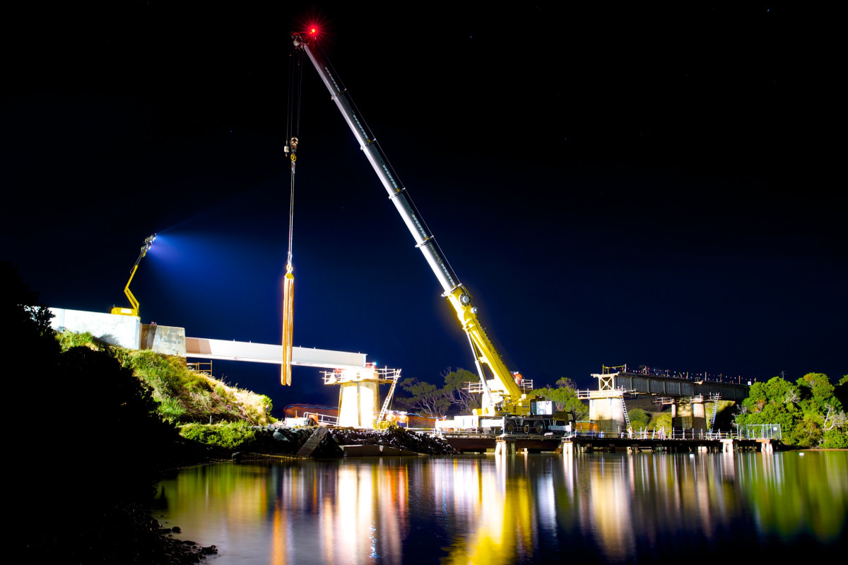 Grove-Krane bauen tasmanische Brücke in drei Tagen wieder auf Australien