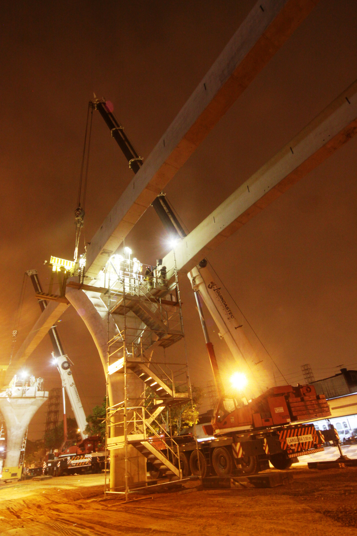 Es handelt sich um ein gigantisches Projekt: den Bau eines neuen Einschienenbahnnetzes in Brasilien. Bevor der erste Zug fahren kann, müssen die Gleise verlegt werden. Das in São Paulo ansässige Hebe- und Logistikunternehmen Guindastec übernimmt die Gleisverlegung und hebt und platziert rund 2.000 Gleisträger. Im Zentrum dieser Arbeiten steht ein Grove GMK5220 All-Terrain-Kran, der die 70 Tonnen schweren Gleisträger auf der Baustelle verlegt. Nilson Rocha, kaufmännischer Leiter von Guindastec, einem langjährigen Kunden von Grove-Kranen, hat das Modell GMK5220 speziell für das Einschienenbahnprojekt angeschafft. „Wir brauchten einen Kran mit sehr hoher Tragfähigkeit, der sich aber dennoch leicht bewegen lässt, während die Fundamentarbeiten voranschreiten“, so Rocha. „Wir haben bereits fünf weitere Grove-All-Terrain-Krane im Einsatz, die wir für Infrastrukturprojekte in ganz Brasilien nutzen. Daher waren wir von unserer Entscheidung überzeugt, dass der GMK5220 der beste Kran für dieses Projekt ist.“ Der GMK5220 zeichnet sich durch eine Tragfähigkeit von 220 t und einen 68 m langen, siebenteiligen Ausleger aus. Durch den Einsatz von Einsätzen und eines Schwenkmechanismus lässt sich die Auslegerhöhe auf bis zu 108 m erhöhen. Die Twin-Lock-Verriegelung und die Megaform-Konstruktion des Auslegers sorgen für erhöhte Steifigkeit und ermöglichen das Heben schwerer Lasten. Ein vollautomatisches Allison-Getriebe und die unabhängige Fünf-Achs-Megatrak-Federung gewährleisten, dass der Kran auch auf anspruchsvollsten Baustellen zuverlässig arbeitet. Die erste von drei Einschienenbahnlinien ist eine 26 km lange Verbindung zwischen Villa Prudente und Cidade Tiradentes. In der ersten Phase, deren Fertigstellung für September 2012 geplant war, verlegte der GMK5220 400 Betonschienen. In der zweiten Phase, die Ende 2013 abgeschlossen sein sollte, verlegte der Kran weitere ca. 1.600 Schienen. Neben dem für die Einschienenbahn eingesetzten GMK5220 besitzt Guindastec einen weiteren GMK5220, einen GMK4100L, einen GMK6300, einen GMK 5170 und einen GMK 5200 – alle aus der Grove-All-Terrain-Kranlinie. Außerdem gehören dem Unternehmen fünf LKW-Ladekrane des Typs National Crane 1400A. Das Einschienenbahnprojekt ist eine bedeutende Investition der Metro São Paulo und der Stadtverwaltung von São Paulo sowie der brasilianischen Regierung in den öffentlichen Nahverkehr. Es unterstreicht das Bestreben der Regierungen, den öffentlichen Nahverkehr auszubauen, um dem rasanten Bevölkerungswachstum des Landes gerecht zu werden. Für das Einschienenbahnsystem werden so viele Waggons benötigt, dass Brasilien eine eigene Fabrik errichtet, um die Nachfrage zu decken. Nach Fertigstellung werden stündlich rund 48.000 Fahrgäste die Einschienenbahn nutzen können. Das entspricht etwa 1.000 Fahrgästen pro Zug. Guindastec ist seit 1979 im Kranbetrieb und -verleih tätig. Laut Rocha war das Unternehmen das erste in Brasilien, das All-Terrain-Krane einsetzte. Guindastec war an mehreren Großprojekten in Brasilien beteiligt, darunter das Olympiastadion 2016 in Rio de Janeiro. Um sich für den Auftrag zu bewerben, reiste das Unternehmen sogar nach Las Vegas, Nevada, USA, um sich über Einschienenbahnsysteme zu informieren. Rocha betont, dass die öffentliche Aufmerksamkeit eines nationalen Projekts, insbesondere eines mit neuer Technologie, qualitativ hochwertige Arbeit und Werkzeuge erfordert. „Das Einschienenbahnprojekt ist sowohl für Guindastec als auch für Brasilien von großer Bedeutung“, sagte Rocha. „Wir können uns keine Ausfallzeiten leisten. Da wir die hohe Qualität der Grove-Krane und den Support von Manitowoc Crane Care bereits aus erster Hand kennen, wissen wir, dass die Krane der Aufgabe gewachsen sein werden.“