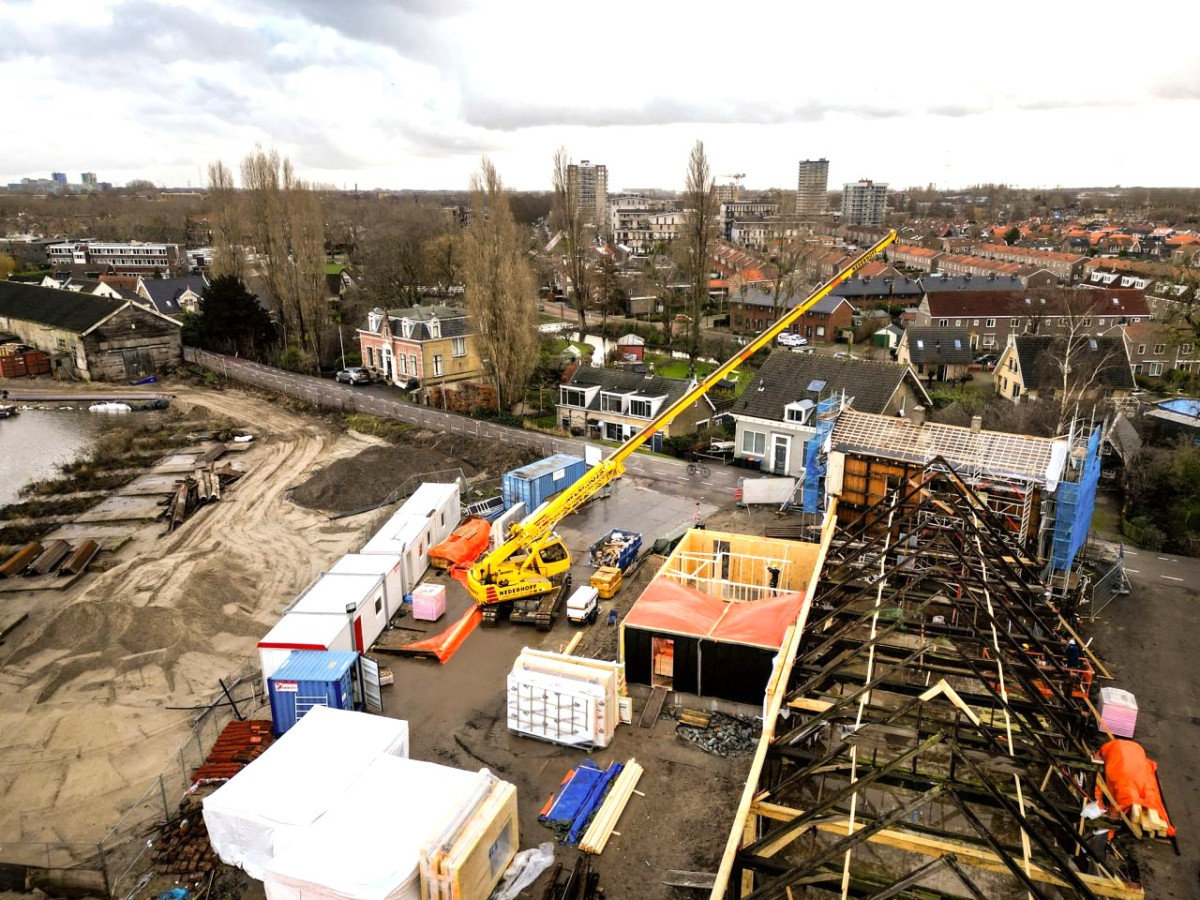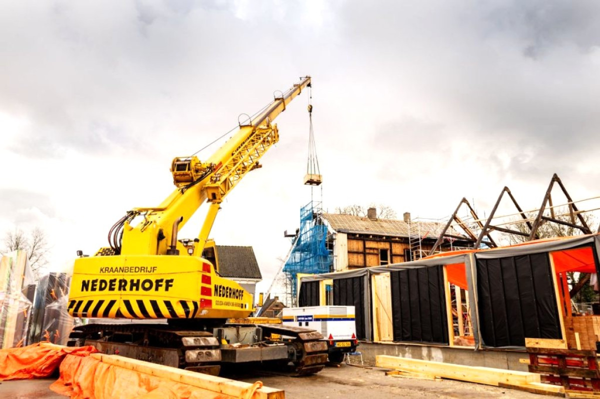 Der 40-t-Raupenteleskopkran Sennebogen 643 R von Kraanbedrijf Nederhoff ist in Krimpen aan den IJssel beim Heben von Holzrahmenelementen bei einem Bauprojekt im Einsatz. Ihr 40-Meter-Raupenteleskopkran ist an dem neuen Bauprojekt „De Oude Werf“ beteiligt, bei dem unter der Leitung von De Langen & van den Berg 53 hochwertige Wohnungen auf der IJssel entstehen. Der Kran wird dort zum Heben von Holzrahmenelementen und verschiedenen Baumaterialien eingesetzt. Dank des Raupenfahrwerks kann er sich stabil und kontrolliert auf der Baustelle bewegen und so die Hebearbeiten sicher und effizient ausführen.