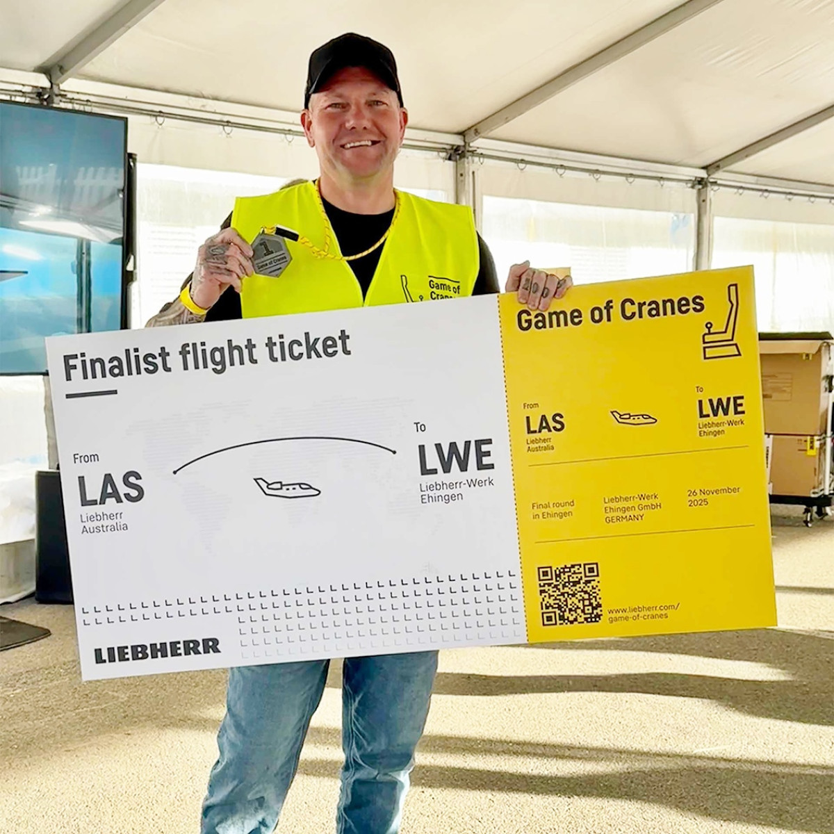 Zur Teilnahme am Game of Cranes gingen bei Liebherr rund 200 Bewerbungen von Mobilkranfahrerinnen und -kranfahrern aus aller Welt ein – 25 von ihnen schafften es in die regionalen Vorentscheide nach Newport News (USA), Guaratinguetá (Brasilien), Adelaide (Australien), Azuqueca de Henares (Spanien) und Dammam (Saudi-Arabien). Dort mussten die Teilnehmer ihr Können in drei Disziplinen – zwei praktischen Aufgaben und einer theoretischen Prüfung – unter Beweis stellen. Auf höchstem Niveau Beim Ausparken mit Remote Drive BTT-E galt es, den Kran aus einer beengten Stellung sicher und präzise zu manövrieren. In einer weiteren Aufgabe mussten die Teilnehmer einen Betonklotz durch einen Parcours bewegen, wobei eine daran befestigte Kette stets Bodenkontakt halten musste – der Klotz selbst durfte den Boden nicht berühren. Auch die Wahl des richtigen Anschlagmittels war Teil der praktischen Herausforderungen. In der Theorieprüfung standen das Arbeiten mit der Betriebsanleitung, die richtige Auswahl von Anschlagmitteln sowie das Berechnen physikalischer Kräfte im Fokus. „Die Leistungen, die wir in den Vorentscheiden gesehen haben, waren beeindruckend. Alle Teilnehmer haben gezeigt, wie anspruchsvoll und professionell das Kranfahren heute ist“, sagt Christoph Behmüller, Leiter Aus- und Weiterbildung bei Liebherr in Ehingen. Fünf Finalisten fahren nach Ehingen Die Gewinner der regionalen Vorentscheide, die sich für das große Finale im November in Ehingen qualifiziert haben, sind: Afrika, Mittlerer Osten und Asien: Kirk Smith (Titan Cranes NZ) aus Neuseeland Australien: Joey Fisher (Johnson & Young Cranes) aus Australien Europa: Scott White (City Lifting) aus Großbritannien Nordamerika: Nick Jackman (Mountain Crane) aus den USA Südamerika: Leonardo Navarro (WWN Guindastes) aus Brasilien „Es war ein harter Wettkampf: Alle teilnehmenden Kranführer waren hochkompetent und stellten ihr Können meisterhaft unter Beweis“, sagt Rene Porto, Bereichsleiter der Mobilkranabteilung bei Liebherr Brasilien. Entsprechend groß ist die Freude bei Leonardo Navarro von WWN Guindastes, der als Gewinner aus dem südamerikanischen Halbfinale hervorgeht: „Ich fühle mich geehrt, nach Deutschland zu reisen, um mich dort mit den besten Kranführern der Welt zu messen“, sagt der brasilianische Kranführer. Rene Porto ergänzt: „Leonardo verdient zweifellos den ersten Platz. Seine Fähigkeiten im Umgang mit dem Kran waren herausragend.“ „Die Vorrunde in Dammam war ein unglaubliches Erlebnis! Die Fünf-Sterne-Behandlung und die Professionalität des gesamten