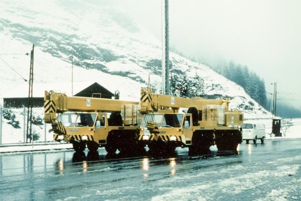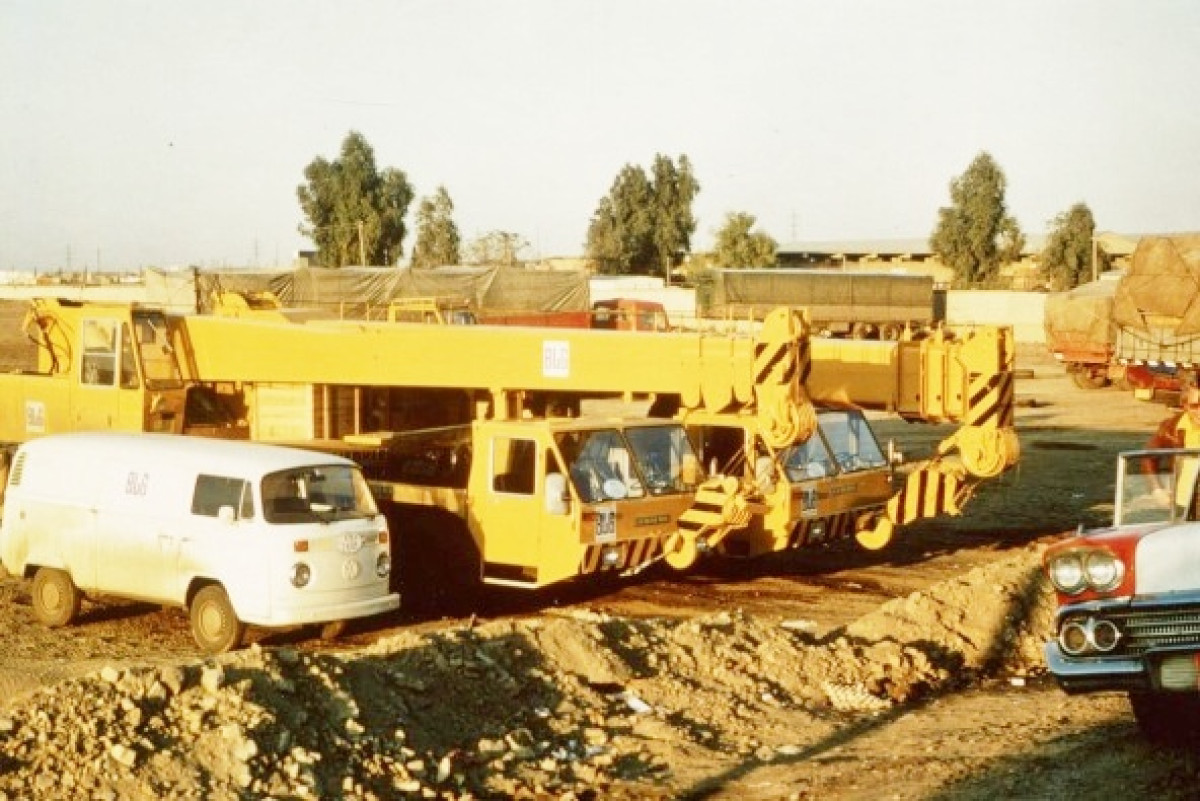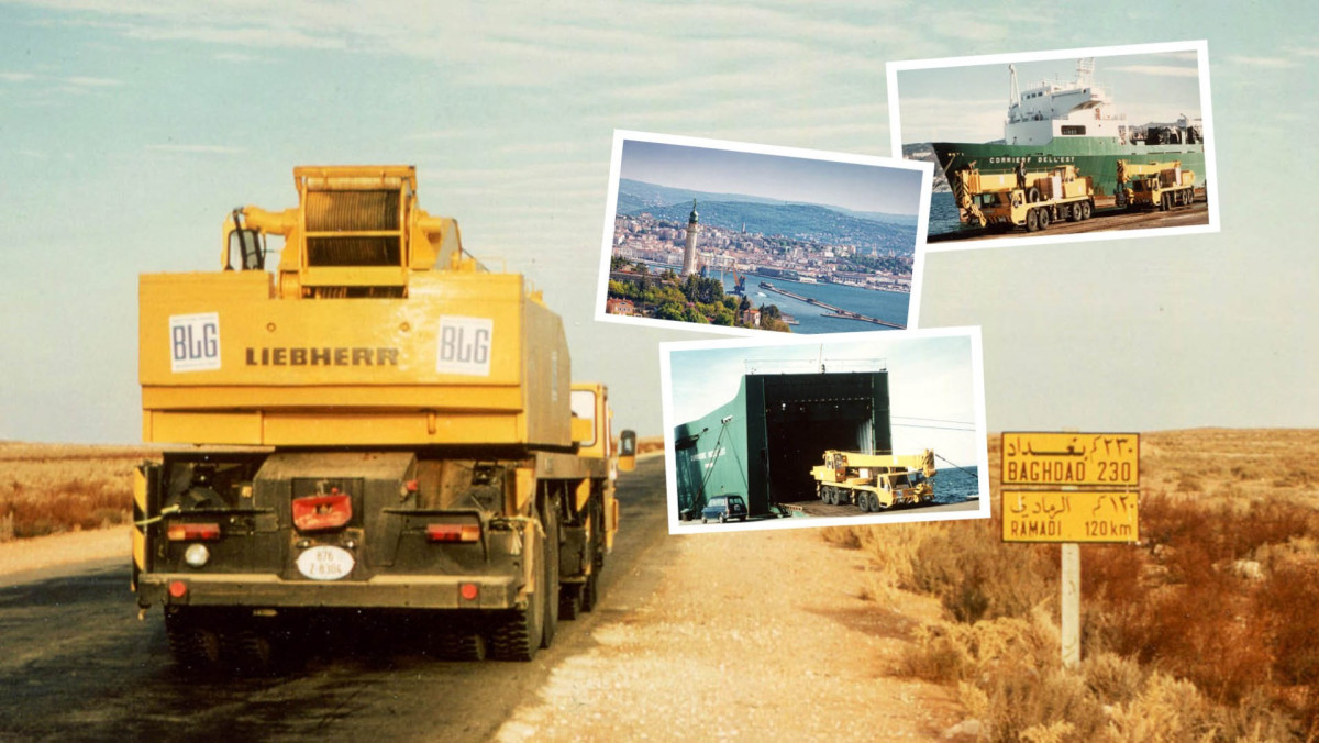 Durch Wasser und Staub – ein Logistik-Abenteuer Im November 1975 schickten sich zwei Teleskopkrane LT 1030 und LT 1045 an, Europa über den Brennerpass bis nach Triest zu verlassen. Ziel: ein irakisches Bauunternehmen in Bagdad. Begleitet wurden sie von drei Fahrern, einem VW-Bus-Servicewagen und einer Basler Spedition. Start in Ulm, dann über München, Kiefersfelden und Innsbruck Richtung Dreiländereck. Ein Motorenservice in Innsbruck, Schnee am Brenner, doch die Staudämme der Zeit wurden geplatzt: Triest sollte am 19./20. November erreicht sein, um das Schiff nicht zu verpassen. Von Ehingen über den Brennerpass nach Triest, mit dem Schiff nach Akaba in Jordanien und über die Hauptstadt Amman, durch die Wüste bis nach Bagdad – innerhalb von zweieinhalb Wochen traversierten im Jahr 1975 zwei Teleskopkrane Europa und den Orient zu einem Kunden im Irak. Der LT 1030 und ein LT 1045 wurden dabei von einem dreiköpfigen Überführungsteam samt VW-Bus-Servicewagen begleitet. Zu dieser Überführung haben unsere Kollegen vom Firmengruppen-Archiv einen spannenden Reisebericht entdeckt. Verfasst wurde der Text von einem damaligen Mitarbeiter der durchführenden Speditionsgesellschaft aus Basel. Der Endkunde, der die beiden Krane kaufte und einsetzte, war ein irakisches Bauunternehmen in staatlicher Hand, das für Infrastrukturprojekte im Land verantwortlich war.----16. November 1975 An einem Sonntagabend im November besteigen unseremdrei Fahrer Luginbühl, Vecchio und Müller [einer BaslermSpeditionsgesellschaft, Anm. d. Red.] den Zug nach Ulm. Sie quartieren sich dort im nächstbesten Hotel ein und werden tags darauf von Herrn Metzger des LiebherrWerks in Ehingen abgeholt. Dort machen sie sich mit ihren Fahrzeugen vertraut und die letzten Vorbereitungen zur langen Fahrt können zusammen mit den Angestellten des Versandwerkes erledigt werden.----17. November Am späten Nachmittag des 17. November 1975 erfolgt der Startschuss, ein von uns allen lang ersehnter Moment – die Krane und der VW-Bus rollen in Richtung Bagdad weg. Ein paar Stunden später wird München durchquert. Kurz nach dem Nachtessen treffen sie am Autobahnzollamt Kiefersfelden ein, wo der Zollagent bereits auf sie wartet. Nach der Überschreitung der Grenze zu Österreich können sich die Fahrer zum ersten Mal ausruhen. Sie übernachten und setzen ihre Fahrt am andern Morgen fort, um bis nach Innsbruck zu gelangen. ----18. November Dort erfolgt ein Motorenservice bei allen drei Fahrzeugen. Noch am gleichen Nachmittag, bei leichtem Schneetreiben, klettern wir auf den Brenner. Den Fahrern ist es bewusst, dass praktisch nur der Schnee sie aufhalten könnte, weshalb sie unter allen Umständen versuchen, diesen Pass zu überfahren, bevor er zugeschneit ist. Lediglich auf der Europabrücke liegt ein wenig Schneematsch, der Rest der Fahrstrecke jedoch ist nur unfreundlich nass und bietet keine schwerwiegenden Hindernisse. Auf dem Brenner drückt der italienische Zollbeamte nur noch seinen Stempel auf die Papiere und schon fahren wir hinunter und durchs Südtirol. Triest muss unbedingt am 19. im Laufe des Morgens erreicht werden, um nicht etwa die Abfahrt des Schiffes zu verpassen. Die Fahrer wissen aber noch nicht, dass sich die Abfahrt des Schiffes inzwischen um einen Tag später verschoben hat.---19. November Das Ro-Ro-Schiff „Corriere Dell‘Est“ legt am Abend des gleichen Tages in Triest an und die Fahrzeuge können nach Erledigung der Zollformalitäten am 20. eingeschifft werden. Zu diesem Zweck öffnet das Schiff seine Achterseite, welche bis zum Pier hinuntergeklappt wird. Auf der so entstandenen Brücke fahren die Krane und der Servicewagen ins Innere der Fähre. ----20. November Tags darauf lässt der Kapitän die Anker lichten und bald schon entschwindet Triest im Dunst. Die Wetterprognose verheißt nicht gerade Angenehmes, was unseren Landratten nicht unbedingt Vertrauen einflößt, umso mehr als es sich nicht um ein riesiges Schiff handelt. In der Nähe der Insel Kreta bricht dann prompt der angesagte Sturm los, was nebst Übelkeit bei den Chauffeuren auch tiefe Stirnrunzeln beim Kapitän verursacht. Er entschließt sich, kurzum den Hafen von Iraklion anzulaufen, um das Ende des Unwetters abzuwarten. Bei der ersten Linderung fahren wir wieder los, jedoch nur einige Seemeilen weit ins Mittelmeer hinaus. Die Winde sind für den Geschmack des Kapitäns immer noch zu stark, sodass er ein zweites Mal den Hafen anläuft. Dieses Spiel wiederholt sich noch einmal und erst beim dritten Versuch wird Kurs auf Alexandria genommen. Diese Manöver bekamen offenbar unserem Walter Luginbühl nicht besonders. Doch zurückblickend lacht er nur über diesen Zwischenfall.---28. November In Alexandria, das am 28. angelaufen wird, kann ein Teil der Ladung gelöscht werden und die Fahrer haben Gelegenheit, sich kurz an Land zu begeben. Besonderen Eindruck gemacht hat ihnen dort die große Aufdringlichkeit der Bevölkerung im Allgemeinen und der Kinder im Besonderen. Die Be- und Entladung von Ro-Ro-Schiffen nimmt nur sehr wenig Zeit in Anspruch, darum nimmt der Landaufenthalt in Alexandria ein schnelles Ende. Nach diesem Zwischenhalt geht es weiter direkt durch den Suez-Kanal nach Akaba. Der Suez-Kanal erlaubt nur die Durchfahrt in einer Richtung. Die Schiffe können sich lediglich im Großen Bittersee kreuzen. Die „Corriere Dell‘Est“ fährt im Konvoi mit neun anderen Schiffen ab Port Said bis Suez. Zahlreiche Händler kommen mit ihren Souvenir-Artikeln und sonstigen Waren an Bord und bestürmen die Passagiere. Diese Händler pendeln täglich zwischen Port Said und Suez. Links und rechts des Suezkanales liegen ausgebrannte Panzerwracks und Bunker, welche von den erbitterten Kämpfen des letzten Nahost-Krieges zeugen. ----30. November Die Sinai-Halbinsel wird umrundet und am 30. November legt die „Corriere Dell‘Est“ in Akaba an. Nach dem Ausladen der Fracht beginnt das große Feilschen um die Zollabfertigung. Die Abfertigung