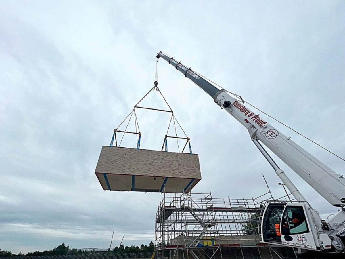 Der Spezialist für Hebezeuge, Modulift, lieferte die Hebetechnik für die Montage von Modulgebäuden in jüngsten Projekten unter der Leitung von DLH Lifting Services. Die Projekte umfassten das Anheben großer Moduleinheiten unter komplexen räumlichen Gegebenheiten und beengten Arbeitsbedingungen. Diese Hebevorgänge unterstreichen die Anpassungsfähigkeit der Traversen und Traversenrahmen von Modulift, die vielfältige Anschlagkonfigurationen ermöglichen. Ein wesentlicher Bestandteil dieses Projekts war der Einsatz der MOD®-Traversen von Modulift, die die notwendige Stabilität und Flexibilität boten, um die modularen Strukturen sicher an ihren Bestimmungsort zu manövrieren. Die Nachfrage nach modularem Bauen steigt aufgrund seiner Effizienz und Nachhaltigkeit stetig an, wodurch hochwertige Hebelösungen unerlässlich werden.------------------------- DLH Lifting Services, verantwortlich für die Projektüberwachung, setzte Traversen von Modulift ein, um die Modulgebäude präzise und sicher zu positionieren. Die vielfältigen Anschlagmöglichkeiten der Modulift-Produkte ermöglichten maßgeschneiderte Hebevorrichtungen, die den unterschiedlichen Gewichten und Abmessungen der einzelnen Modulgebäude gerecht wurden. Die Traversen und CMOD-Traversenrahmen verteilen die Kräfte der Hebebänder, die andernfalls die Struktur der Modulgebäude beschädigen könnten. Der maßgefertigte Modulift-H-Rahmen ist eine alternative Hebemethode, die speziell für das Anheben von Modulgebäuden entwickelt wurde. Die individuell gefertigten Hebebalken werden nach jeder Größe und Spezifikation hergestellt und bieten höchste Stabilität und einfache Handhabung. Dadurch eignen sie sich ideal für Lasten, die zu flexibel oder zu empfindlich sind, um ohne Unterstützung angehoben zu werden.------------------------Modulare Gebäude erfreuen sich aufgrund ihrer Kosteneffizienz, kürzeren Bauzeiten und geringeren Umweltbelastung zunehmender Beliebtheit. Diese vorgefertigten Einheiten werden außerhalb der Baustelle hergestellt und zum endgültigen Standort transportiert, was einen effizienteren Einsatz von Material und Arbeitskräften ermöglicht. Das Anheben und Montieren modularer Strukturen stellt jedoch besondere Herausforderungen dar, darunter die präzise Positionierung, die unterschiedlichen Abmessungen der Einheiten und die Gewährleistung der strukturellen Integrität während Transport und Aufstellung. Um diese Herausforderungen zu meistern, sind spezialisierte und vielseitige Hebelösungen erforderlich, die schwere Lasten über verschiedene Spannweiten hinweg sicher und effizient handhaben können. Sarah Spivey, Geschäftsführerin von Modulift, kommentierte: „Unsere Traversen haben sich als unverzichtbarer Bestandteil des Modulbaus erwiesen. Die Fähigkeit, sich an unterschiedliche Hebeanforderungen anzupassen und gleichzeitig höchste Sicherheitsstandards zu gewährleisten, macht unsere Ausrüstung zur bevorzugten Wahl in der Branche.“