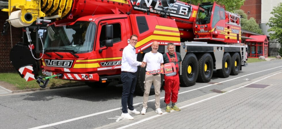 In diesem Jahr reisten die Mitarbeiter der G.A. Neeb GmbH & Co. KG bereits zur dritten Kranabholung nach Wilhelmshaven. Der erste Kran war ein Grove GMK3060L-1 mit 48 m langem Hauptausleger. Für Neeb ist dies bereits der zweite Kran dieses Typs – diesmal mit der neuen und noch komfortableren Unterwagenkabine.In diesem Jahr reisten die Mitarbeiter der G.A. Neeb GmbH & Co. KG bereits zur dritten Kranabholung nach Wilhelmshaven. Der erste Kran war ein Grove GMK3060L-1 mit 48 m langem Hauptausleger. Für Neeb ist dies bereits der zweite Kran dieses Typs – diesmal mit der neuen und noch komfortableren Unterwagenkabine.---------------Im Sinne der europäischen Energiewende hat Neeb mit Standort in Wuppertal speziell für die Windkraftvormontage ein weiteres Paket bestehend aus Kranen der Typen GMK4080L, GMK4100L-2, GMK5250XL-1, GMK6300L-1 & GMK6400-1 in Wilhelmshaven platziert, um gerüstet zu sein für die Transformation und die bereits jetzt anstehenden Projekte. Die G.A. Neeb GmbH & Co.KG blickt auf eine über 60-jährige Unternehmensgeschichte zurück. 1991 übernahm Gustav-Armin Neeb den Betrieb von seinem Vater Gustav-Adolf Neeb; 2000 wurde ein weiterer Firmensitz in Zaragoza, Spanien, gegründet. In diesem Jahr konnte das Unternehmen seinen neuen Hauptsitz in Wuppertal beziehen – ein Zeichen der stetigen Expansion, die schon durch die nächste Generation, Gustav-Adrian Neeb, gesichert ist. Der Fokus wird sich neben dem Geschäft in Deutschland auch auf die Ausweitung der Aktivitäten am Standort in Spanien richten. Die Partnerschaft zwischen Manitowoc, Neeb und der KranAgentur blickt auf eine vielversprechende Zukunft, in der innovative Technologie und außergewöhnliche Leistung Hand in Hand gehen. Apropos Hand in Hand: die KranAgentur Werner dankt in ihrem 20. Jubiläumsjahr Armin Neeb, welcher mit der Bestellung des GMK6400-1 die Schallmauer der 1.000 verkauften Manitowoc Krane durchbrach.