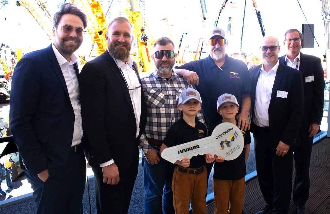 Die Übergabe auf der Conexpo im letzten Monat – (v.l.n.) Simon Schuster und Beau Pocock von Liebherr mit Paul Prillaman Junior und Senior sowie Brian Peretin und Bret Jacobson von Liebherr. Vorne: Paul Juniors Söhne, Paul und Page Prillaman. Das US-amerikanische Vermietungsunternehmen Prillaman's Crane & Rigging hat einen 250 Tonnen schweren All-Terrain-Kran vom Typ LTM 1250-5.1 in Empfang genommen. Damit ist es der neunte Liebherr-Kran im Fuhrpark des Unternehmens.------------------------Die fünfachsige LTM 1250-5.1 verfügt über einen sechsteiligen, 60 Meter langen Hauptausleger sowie eine 12,2 bis 22 Meter lange, zweifach klappbare Auslegerverlängerung mit bis zu 45 Grad Schwenkbereich. Es stehen zahlreiche Verlängerungsoptionen zur Verfügung, darunter ein 50 Meter langer Gittermast, der ebenfalls um bis zu 45 Grad schwenkbar ist. Die maximale Arbeitshöhe beträgt 113 Meter.------------------------Prillaman's Crane & Rigging mit Sitz in Hampton, Virginia, wurde 2007 gegründet, als Paul Prillaman das Potenzial eines Krans für das Baumpflegeunternehmen seines Vaters erkannte. Anfangs nutzte er den Kran für lokale Aufträge, später baute Prillaman den Kranverleih aus, woraus schließlich Prillaman's Crane & Rigging entstand. Heute zählen Regierungsstellen und Militärstützpunkte, Werften, Yachthäfen, Kraftwerke, Fertighaushersteller und Anbieter von gewerblichen Klimatechniksystemen in Virginia, North Carolina und Maryland zu den Hauptkunden. Die Mietflotte reicht vom 9-Tonnen-Pick-and-Carry-Kran bis zum 400-Tonnen-Liebherr-All-Terrain-Kran, ergänzt durch LKW-Ladekrane und Teleskoplader. Das Unternehmen ist außerdem ein von der NCCCO anerkannter Schulungsanbieter und Prüfstandort.