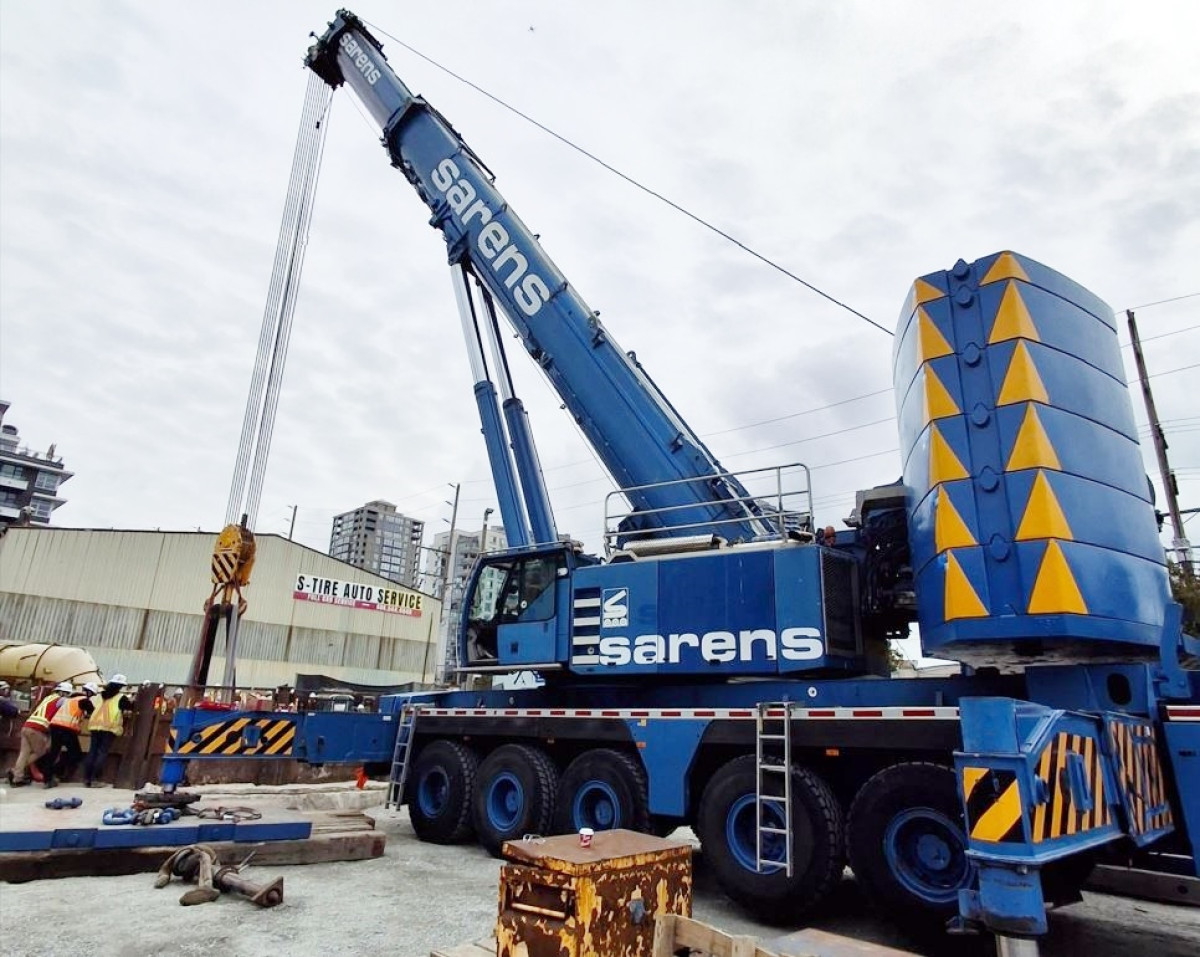 TBM-Entfernung durch Sarens aus dem Annacis Water Supply Tunnel-Projekt in Kanada. Die Entfernung der Tunnelbohrmaschine, TBM, Schneidekopf, mit einem Gewicht von ca. 250.000 Pfund (567 t), erfolgte bei einem Radius von rund 25 Fuß (38 m). Das Projekt erforderte eine sorgfältige Planung aufgrund der engen Baustelle und der umliegenden Verkehrssituation. Während der Planungsphase adressierten die Ingenieure von Sarens zentrale Punkte wie Kranbandlänge, Tragfähigkeitsberechnungen und ausgearbeitete Hebepunkte am TBM. Für diesen Einsatz setzte Sarens seinen LTM 1400 ein (nur Hauptausleger) – speziell ausgewählt wegen seiner Kapazität und Zuverlässigkeit in engen Arbeitsumgebungen. Das Kranfahrzeug und die erforderlichen Gegengewichte wurden von Surrey nach New Westminster transportiert, was 4–5 Lastwagen und etwa 40 Minuten Fahrtzeit erforderte. Die Vor-Ort-Aufstellung des Equipments nahm 8 Stunden in Anspruch, danach führte das vierköpfige Spezialistenteam von Sarens den Hebevorgang präzise aus. Trotz der engen Platzverhältnisse und logistischer Herausforderungen arbeitete das Team nahtlos, sicher und effizient und untermauert Sarens’ Ruf für technisches Know-how und operative Exzellenz. Mit dem erfolgreichen Abschluss dieser Entfernung leistet Sarens einen Beitrag zu einem Projekt von regionaler Bedeutung: der Sicherstellung einer stabilen, langfristigen Wasserversorgung für Millionen von Menschen in British Columbia. Mit jahrzehntelanger Erfahrung, einer globalen Flotte hochkapazitiver Ausrüstung und einer nachweislich sicheren, präzisen Ausführung zeigt Sarens erneut, warum das Unternehmen bei den weltweit anspruchsvollsten Hebe- und Transportprojekten vertrauenswürdig ist.