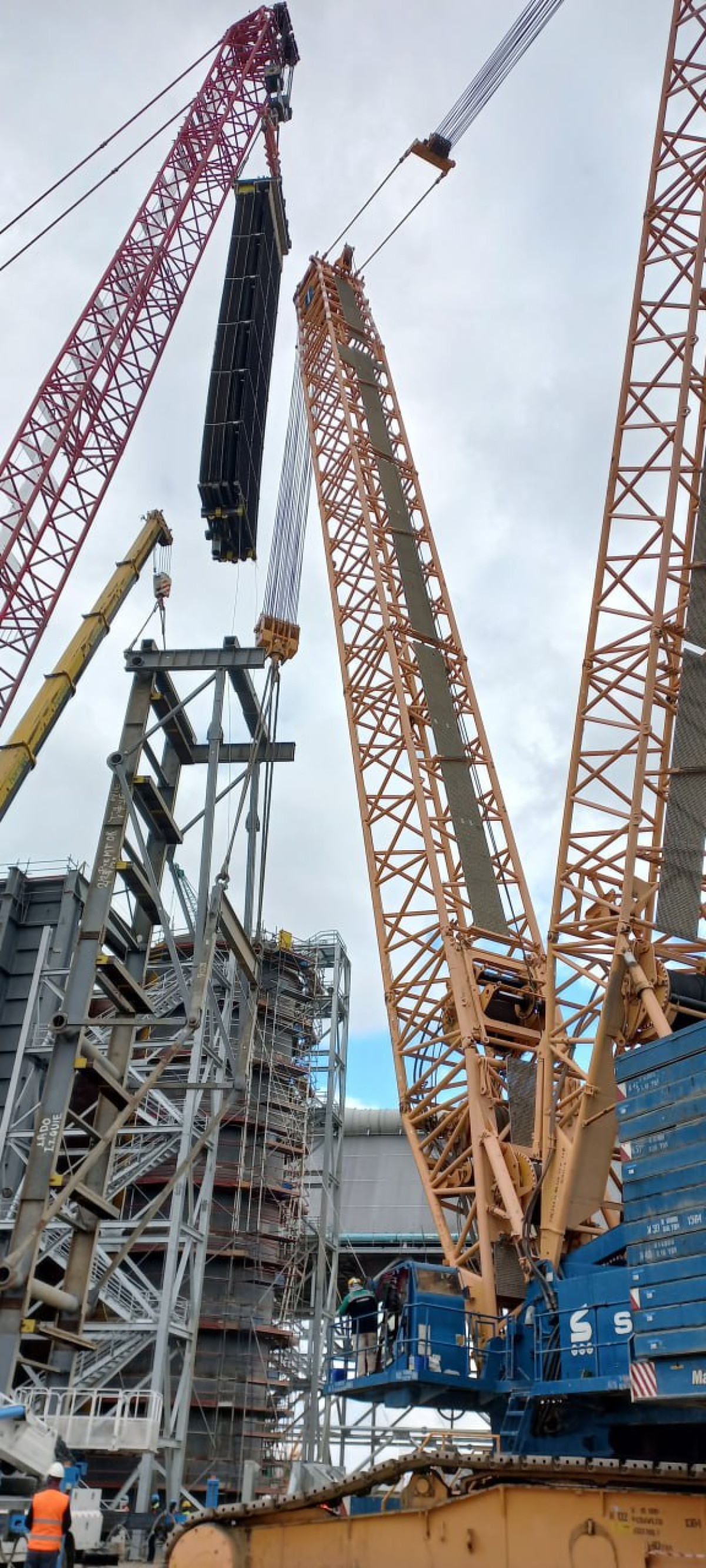 Sarens hat die Hebearbeiten für die Erweiterung des Wärmekraftwerks Navoi in Usbekistan erfolgreich abgeschlossen und damit die Kapazitätserhöhung der Anlage auf 650 MW unterstützt. Das Projekt ist Teil eines umfassenderen Modernisierungsprogramms zur Steigerung der Effizienz, Reduzierung von Emissionen und Stärkung der Energieversorgungssicherheit in der Region. Sarens war für die Montage von 15 HRSG-Modulen verantwortlich. Jedes Modul war 27 m lang und wog bis zu 290 t. Die Montage erfolgte in einem Arbeitsradius von 12 m. Die Module wurden im Rahmen einer koordinierten Montage zusammen mit einem 1.000-t-Kran installiert, was eine präzise Synchronisierung und kontrollierte Manövrierbarkeit erforderte.------------------------------Für die Durchführung der Arbeiten setzte Sarens seinen Manitowoc 18000 Raupenkran (750 t) mit einem 54,9 m langen Hauptausleger ein. Der Kran wurde speziell für die Montage der Heckauslegerkonfiguration ausgewählt, um während des gesamten Einsatzes eine stabile und effiziente Hubleistung zu gewährleisten. Der Transport des Krans von Taschkent zur Baustelle dauerte 15 Tage, die Montage war in fünf Tagen abgeschlossen. Insgesamt blieb der Kran etwa zwei Monate vor Ort. Ein neunköpfiges Spezialistenteam, bestehend aus Kranführern, Anschlägern, Ingenieuren und Betriebspersonal, unterstützte das Projekt. Vier Anschläger und ein Kranführer waren direkt an den Hebearbeiten beteiligt. Wie bei allen Sarens-Projekten wurde Sicherheit von Anfang an großgeschrieben. Gründliche Inspektionen, vorbeugende Wartung und eine strukturierte Überwachung wurden vor und während der Ausführung durchgeführt. Sarens wurde aufgrund seiner nachweislichen Erfolgsbilanz und der bereits erfolgreichen Zusammenarbeit mit dem Hauptauftragnehmer beim Wärmekraftwerksprojekt Talimarjan für das Projekt ausgewählt. Diese Vorerfahrung bestärkte das Vertrauen in Sarens' technisches Know-how, seine operative Disziplin und sein Engagement für die Einhaltung der SHEQ-Standards. Die Erweiterung des Wärmekraftwerks Navoi führt zu effizienteren und saubereren Stromerzeugungstechnologien und trägt so zu einem geringeren Brennstoffverbrauch und einer niedrigeren Umweltbelastung im Vergleich zu konventionellen Systemen bei. Durch die Unterstützung der Installation kritischer Infrastrukturkomponenten beweist Sarens erneut seine Kompetenz in der Bereitstellung komplexer Schwerlastlösungen, die weltweit großflächige Energieprojekte ermöglichen.