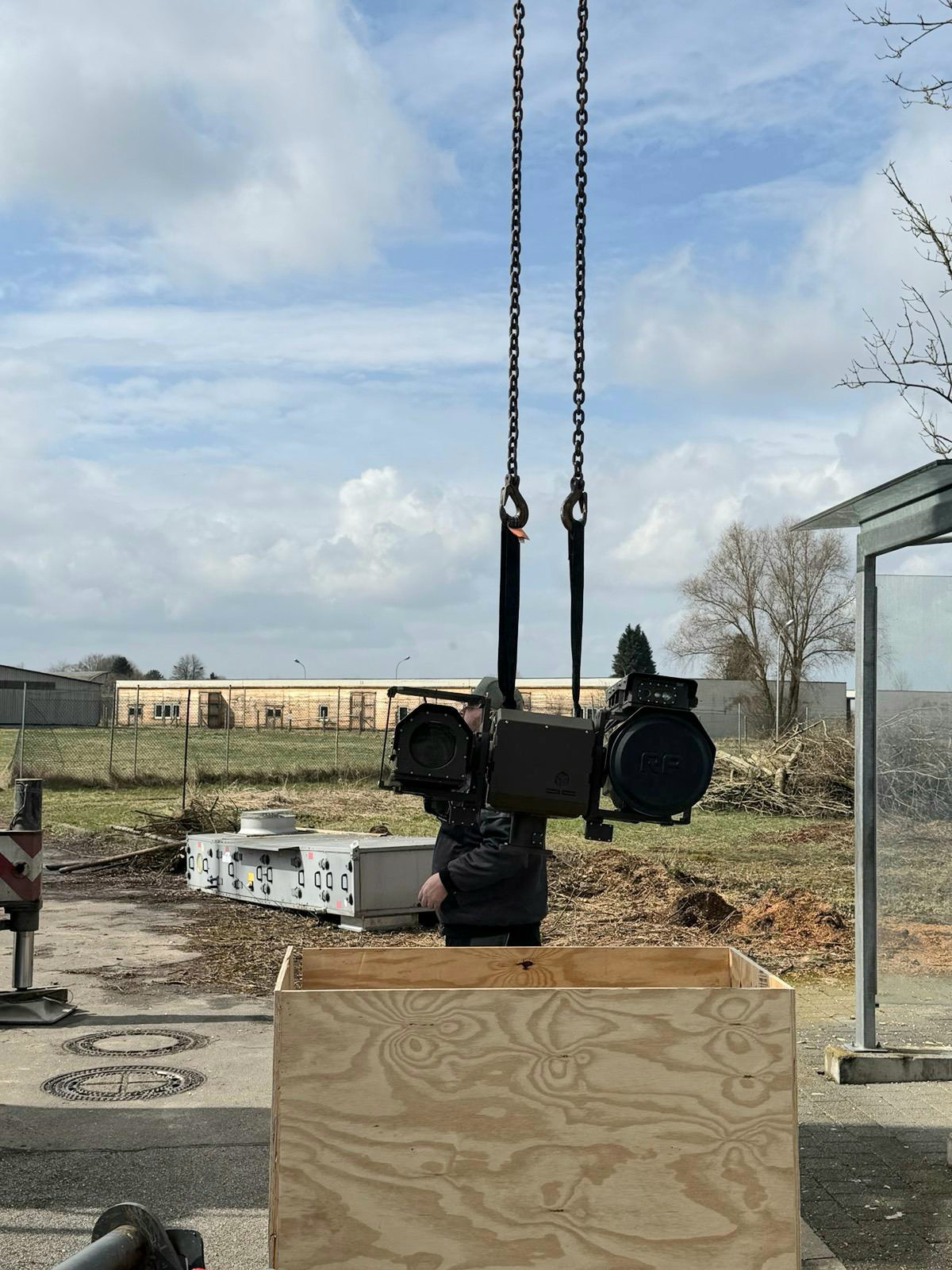 Südkran Saller Hallbergmoos Tadano Faun ATF 90 G-4 Die erste Drohnenabwehr-Kamera in Deutschland installiert, Wert ca.1,0 Mio Euro, Reichweite ca 5,0 Kilometer