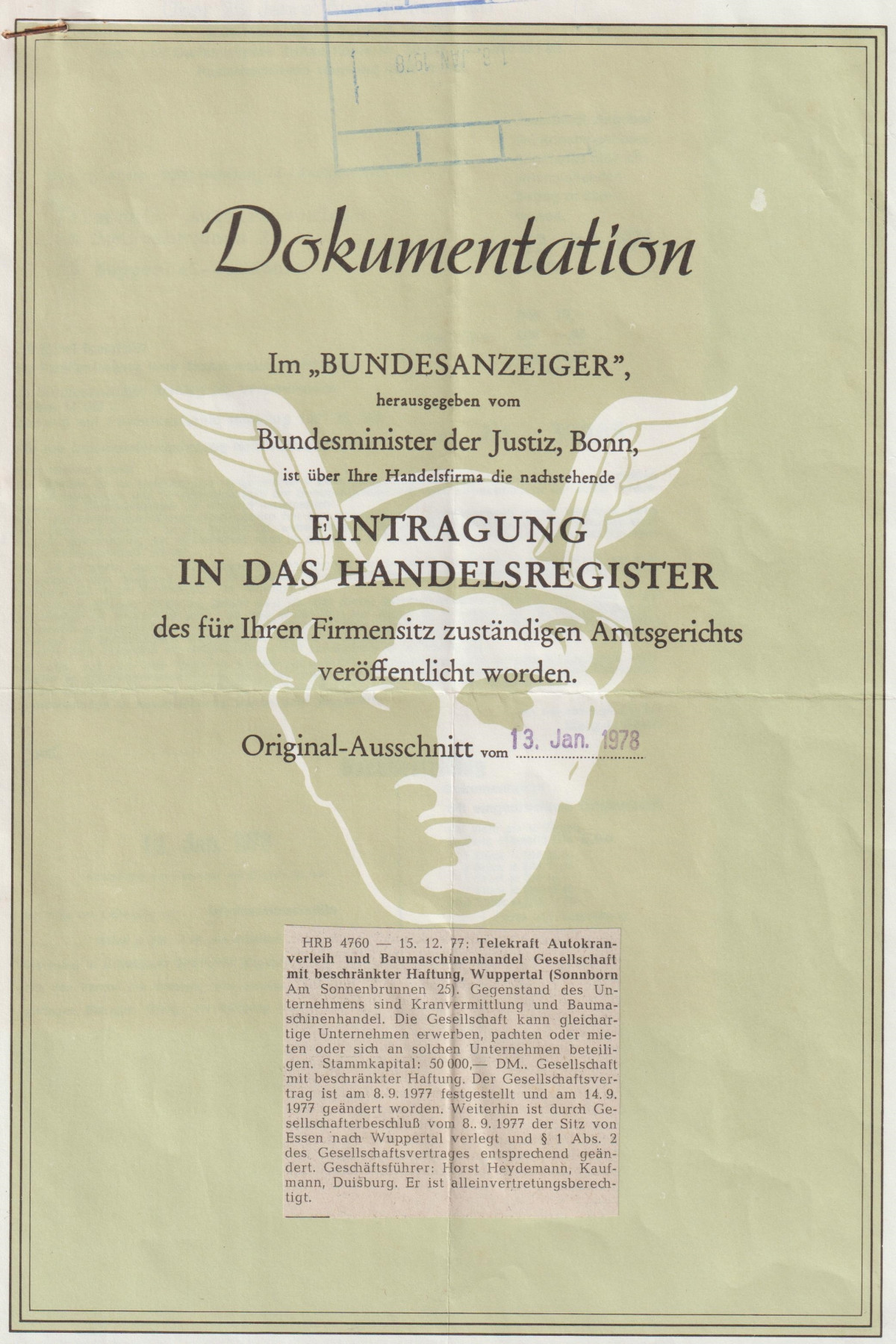 Telekraft GmbH am 08.09.1977 gegründet Essen - Wuppertal gegründetLiebherr LTM 1400-7.1 Telekraft und Terca mit gleichen Wurzeln (Heydemann/Kronschnabel/ Tochenhagen/Wasel/Hagedorn,vielleicht geht noch mehr)