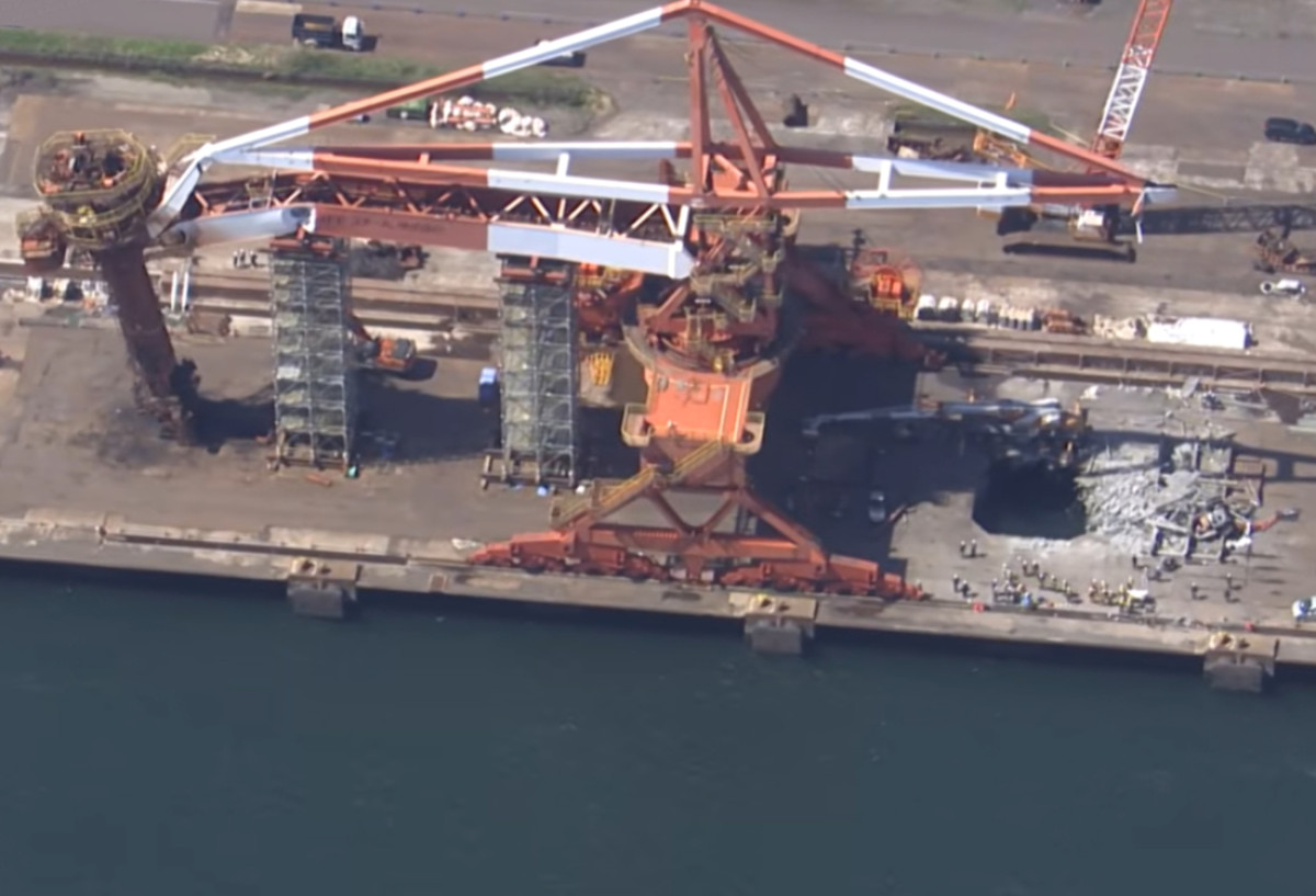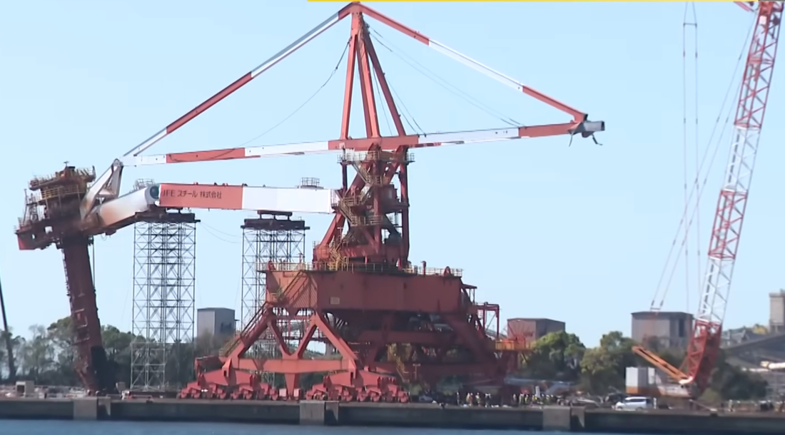 Drei Männer sind gestorben, einer wird noch vermisst und einer ist schwer verletzt, nachdem es bei Demontagearbeiten an einem Schiffskran in einem Stahlwerk am Hafen in Kawasaki-Stadt, südlich von Tokio in Japan, zu einem Unfall gekommen ist.------------------- Der Vorfall ereignete sich am Dienstagabend, dem 7. April, als ein Team dabei war, einen alten Kaikran von IHI zu demontieren. Ein großer, 35 Meter hoher Gerüstturm stützte das Gegengewicht, während zusätzliche Türme den Ausleger und den vorderen Teil abstützten.-------------------------- Die fünf direkt beteiligten Männer – zwei in ihren Zwanzigern, zwei in ihren Vierzigern und ein Teenager – sollen an dem 500 Tonnen schweren, tonnenförmigen Beton-Gegengewicht mit den Maßen sechs mal neun Meter gearbeitet haben. Offenbar waren sie dabei, dieses zu zerlegen, anstatt zu versuchen, es mit einem großen Kran abzubauen, was angesichts der Höhe und des Gewichts nachvollziehbar ist.--------------------------------- Die Arbeiten wurden trotz starker Winde in der Region fortgesetzt. Was den Unfall letztlich ausgelöst hat, ist jedoch noch unklar. Fest steht, dass sich das mit Stahl ummantelte Beton-Gegengewicht vom Gegenausleger löste und die Gerüstkonstruktion einstürzte. Was dabei zuerst geschah und den Unfall verursachte, ist bislang unbekannt oder wurde nicht kommuniziert.--------------------------------------------- In jedem Fall stürzte das Gegengewicht aus einer Höhe von 30 Metern oder mehr auf das Deck, durchschlug es und riss möglicherweise einige der darunter arbeitenden Personen mit ins Wasser. Mindestens ein Bagger wurde umgeworfen, während ein vierachsiger Geländekran (Rough-Terrain-/City-Kran) nur knapp unbeschädigt blieb.--------------------------- Die Polizei der Präfektur Kanagawa bestätigte, dass sich der Unfall im JFE-Stahlwerk in Ogishima, Bezirk Kawasaki, Stadt Kawasaki, während der Demontage eines Krans ereignete. Außerdem wurde bestätigt, dass drei der vier ins Krankenhaus gebrachten Männer – allesamt Firmenangestellte – verstorben sind. Ihre Namen wurden als Kenshiro Chiba, Yu Koike und Katsumi Ueyama genannt.