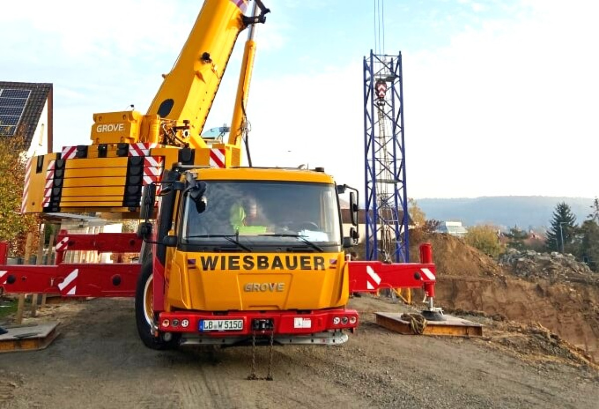 Manitowoc hat Ende Oktober 2020 einen GMK5150L an die Wiesbauer GmbH & Co. KG im Wilhelmshavener Werk übergeben. Die Nachfolger in der Geschäftsleitung, Florian Wiesbauer und Felix Wiesbauer, nahmen den Grove All-Terrain Kran gemeinsam mit den Kranfahrern Jannik Weigle, Ralf Hoffmann und Samuele Polidori in Empfang. Gute Erfahrungen mit den GMKs waren ausschlaggebend für die Kaufentscheidung, ebenso wie deren starke Traglasten, ein überzeugendes Preis-Leistungsverhältnis und die Beliebtheit der Grove GMKs bei den Mitarbeitern. Ein neuer GMK5150L verstärkt seit Ende Oktober die Flotte der Wiesbauer GmbH & Co. KG. Für die Übergabe im Manitowoc Werk reisten die Nachfolger in der Geschäftsleitung, Florian Wiesbauer und Felix Wiesbauer, nach Wilhelmshaven und nahmen den neuen All-Terrain Kran gemeinsam mit drei Kranfahrern des Unternehmens entgegen. „Das gute Preis-Leistungsverhältnis bei Grove sowie die starken Traglasten des GMK5150L haben uns überzeugt, in den 150-Tonner von Grove zu investieren. Als Familienunternehmen ist es uns wichtig, dass sich unsere Kranfahrer während der Arbeit wohlfühlen. Hierzu tragen definitiv auch die komfortable Grove Kabine und das MAXbase System bei“, erklärte Felix Wiesbauer. Mit dieser Technologie lässt sich die Abstützbasis des Krans flexibel und auch asymmetrisch einstellen, sodass Traglasten und Arbeitsbereiche weiter gesteigert werden. „Die MAXbase Option erleichtert die Arbeit.“ Hierüber waren sich die Kranfahrer Jannik Weigle, Ralf Hoffmann und Samuele Polidori einig: „Man kann sich optimal an die Baustellenverhältnisse anpassen und auf lastabgewandter Seite zum Beispiel mit halb ausgefahrenen Stützen fahren.“ Des Weiteren ist der GMK5150L von Wiesbauer mit einer 17,8 m langen hydraulischen Doppelklappspitze ausgestattet, die den Kran noch flexibler einsetzbar macht, indem sie noch mehr Reichweite bietet. Mit seinem 60 m langen MEGAFORM Ausleger mit TWIN-LOCK Verriegelungssystem ist der 150-Tonner von Grove für seine künftigen Aufgaben bestens gerüstet: das Aufstellen von Baukranen, der Einhub von Fertigteilen auf Dachflächen, Klimageräte, die in Gebäude eingebracht werden müssen oder Werbeschilder, die in großer Höhe angebracht werden. Dies sind alles Aufgaben, die der GMK5150L mit seinen starken Traglasten, kompakter Stellfläche und guter Verfahrbarkeit meistert. Nach der Übergabe ist der GMK5150L an den Wiesbauer-Hauptsitz nach Bietigheim-Bissingen gefahren, wo direkt die ersten Einsätze auf ihn warteten. Als Ersteinsatz wurde ein Löschwasserbehälter mit knapp 22,0 t Gewicht versetzt. Der zweite Einsatz bestand darin, einen Baukran (Potain MDT 178) bei 18,0 m Ausladung aufzubauen. Dabei wogen die Teile des Potain Kranes von 6,5 t (Turmdrehkran-Spitze und -Gegenausleger) bis 10,5 t (Turmdrehkran-Hauptausleger). Der GMK5150L ist nun Teil der rund ein Dutzend GMKs zählenden Wiesbauer-Flotte und bereits der zweite GMK5150L, der seine Taxitraglasten in Kombination mit kompaktem Design unter Beweis stellt. Bei der Kranübergabe dankte Lukas Brämer, Außendienstmitarbeiter der KranAgentur Werner, Florian und Felix Wiesbauer für das Vertrauen und für die gute Zusammenarbeit: „Ich freue mich, dass die Entscheidung klar für den GMK5150L ausgefallen ist und wir damit auch die Wiesbauer Kranfahrer glücklich machen können. Allzeit gute Fahrt und eine hohe Auslastung!“ Über die Wiesbauer GmbH & Co. KG Die Wiesbauer GmbH & Co. KG hat ihren Hauptsitz in Bietigheim-Bissingen und verfügt zudem über vier weitere Niederlassungen in Baden-Württemberg. Das traditionsreiche Familienunternehmen mit rund 160 Mitarbeitern bietet seinen Kunden in ganz Europa Dienstleistungen in der Kran- und Schwerlastlogistik und verfügt über einen Fuhrpark mit ca. 80 Kranen sowie weiteren Transportfahrzeugen und Staplern. Die Kranflotte zählt Grove GMKs von 80 bis 300 Tonnen Traglast.
